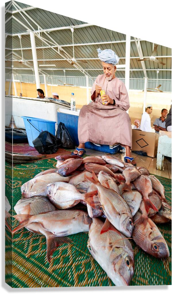 ABOUT THIS ARTWORK: MAN SELLS FRESH FISH AT MUSCAT OMAN FISH MARKET TODAY