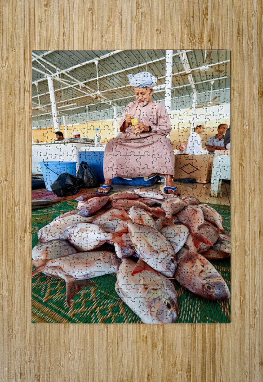 Man sells fresh fish at Muscat Oman fish market today Marco Brivio Puzzle printing