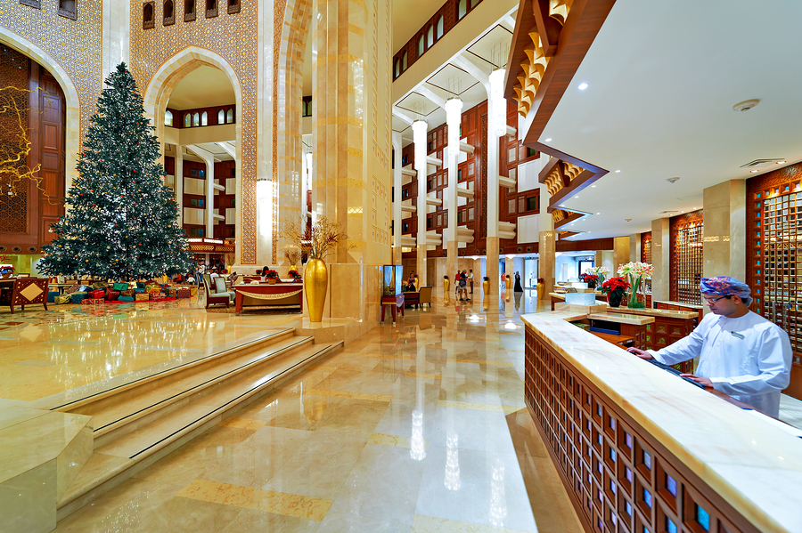 LUXURY HOTEL LOBBY DURING HOLIDAY SEASON IN OMAN