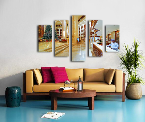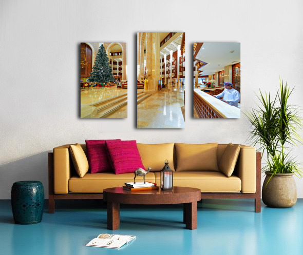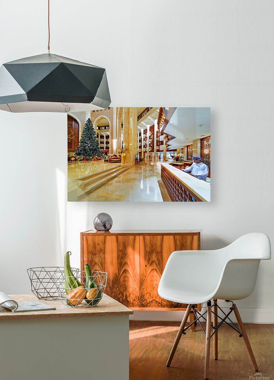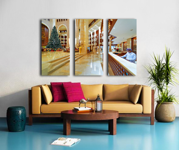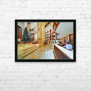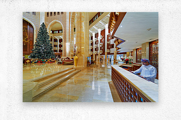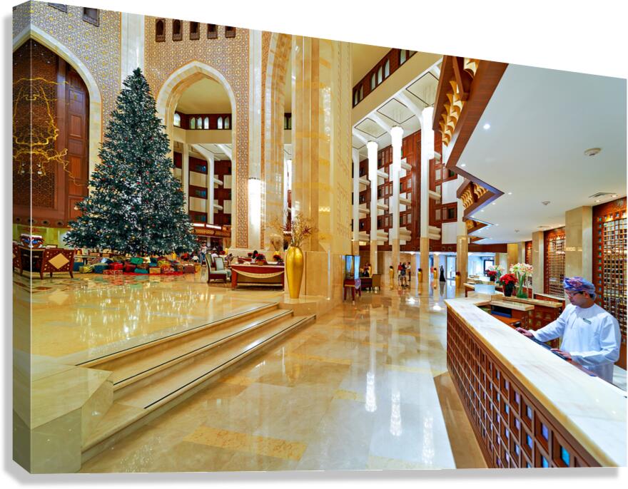 Get this artwork "Luxury hotel lobby during holiday season in Oman" in a framed print.