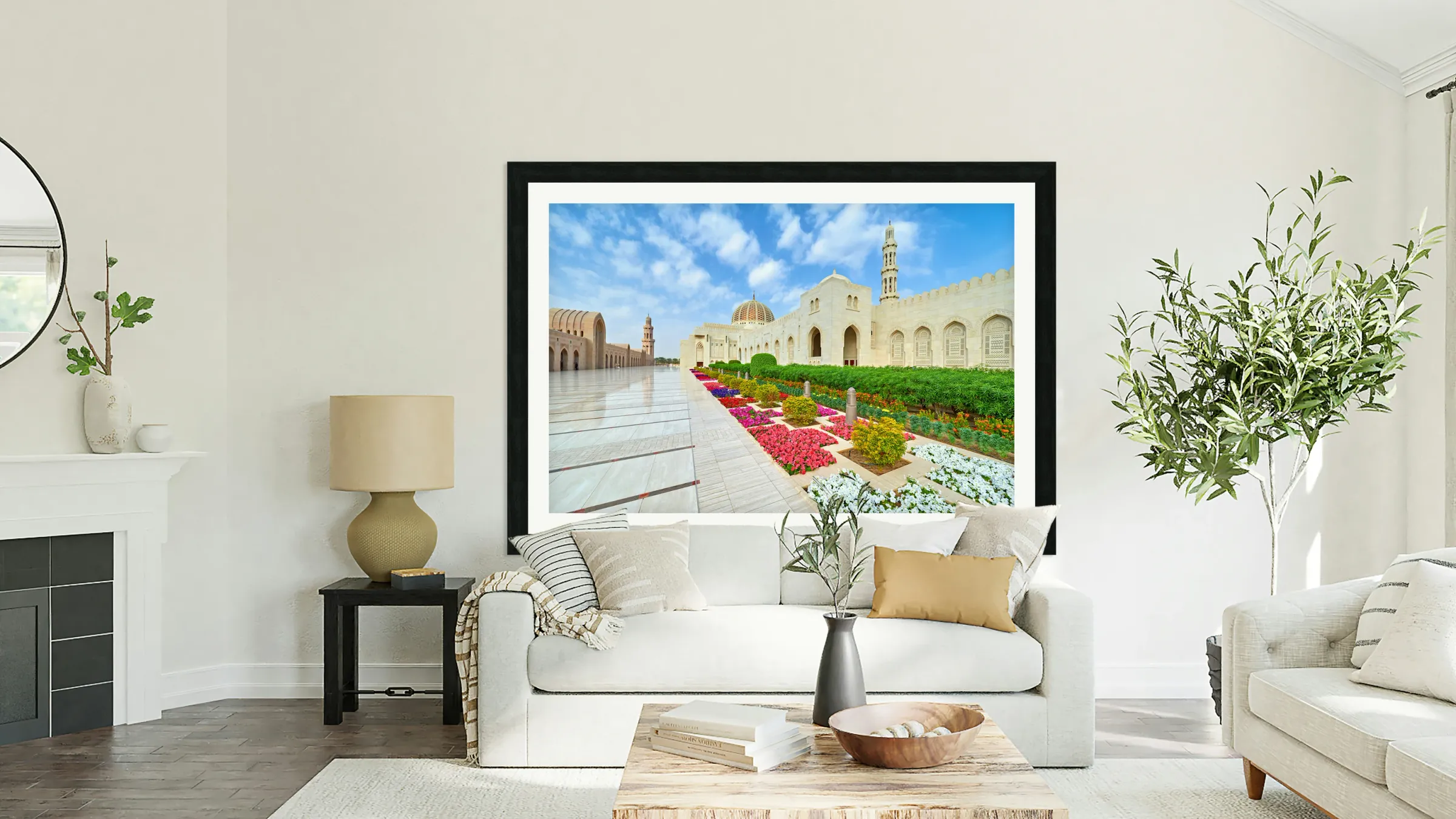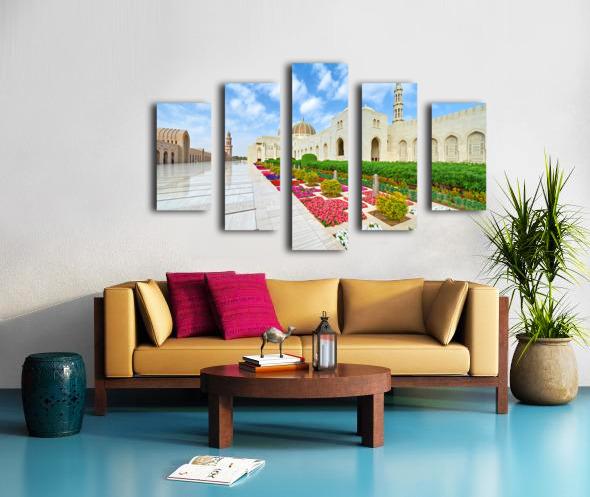 Visit Sultan Qaboos Grand Mosque in Muscat Oman during the day Frame print