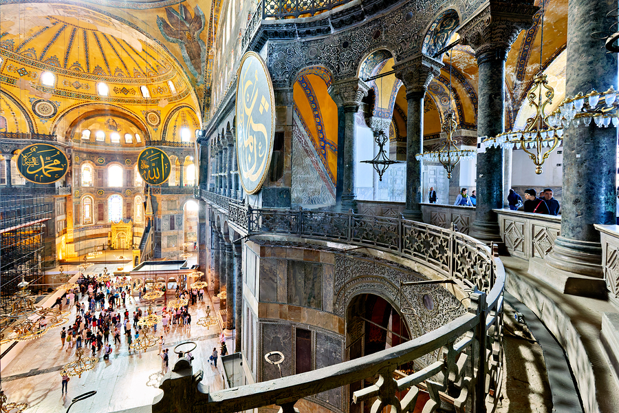 VISITORS EXPLORE HAGIA SOPHIA GRAND MOSQUE IN ISTANBUL