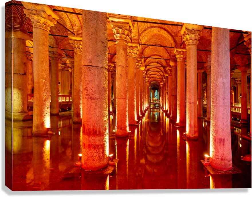 ABOUT THIS ARTWORK: EXPLORE BASILICA CISTERN AT NIGHT WITH REFLECTED LIGHTS
