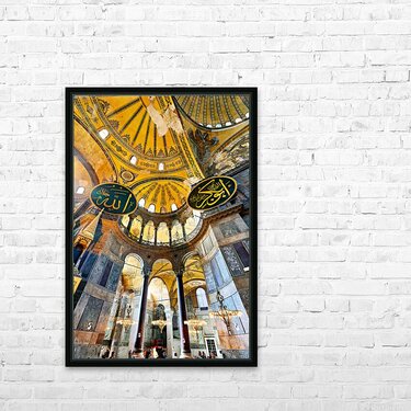 Get this artwork "Visitors explore Hagia Sophia Grand Mosque in Istanbul" in a framed print.