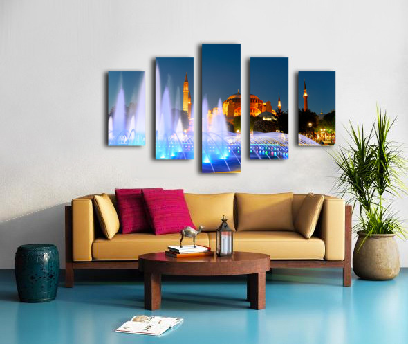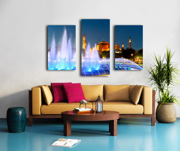 Hagia Sophia Grand Mosque at night with a fountain display Frame print