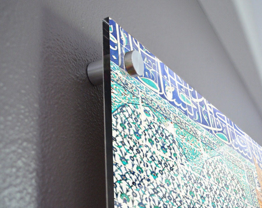 Printed to the edge - Ready to hang - provided with 4 premium polished aluminum stand off ( wall screws and mounting hardware provided )