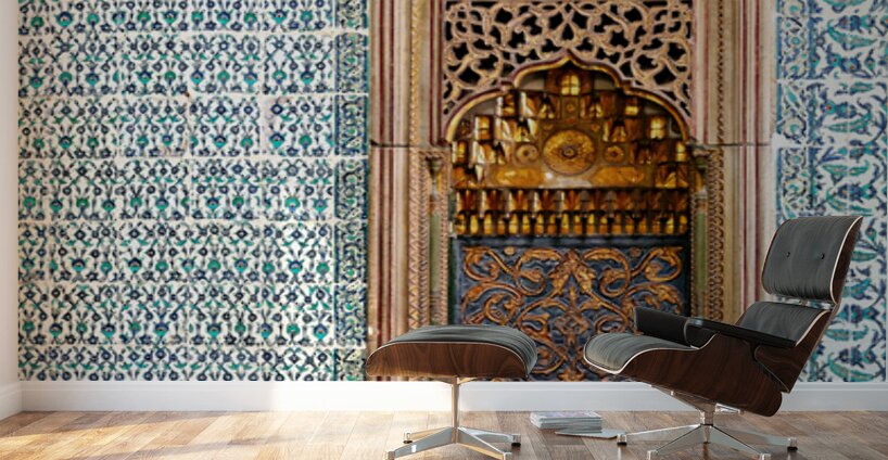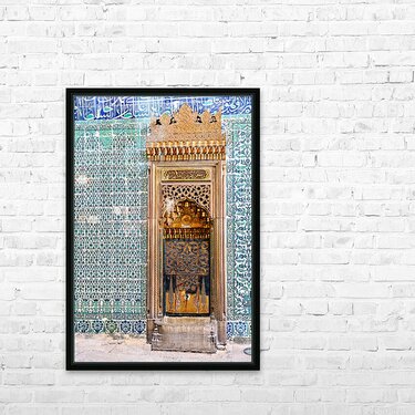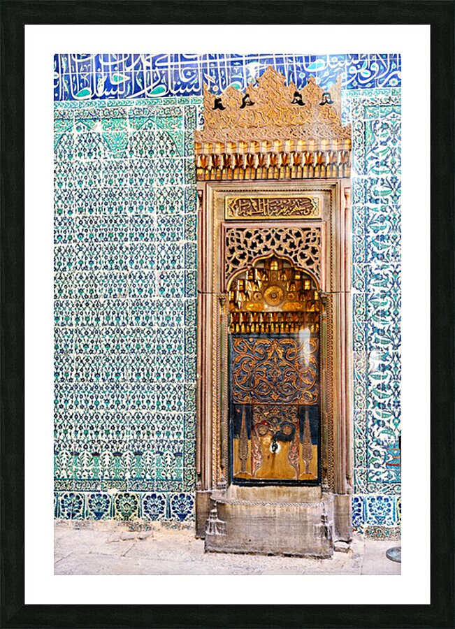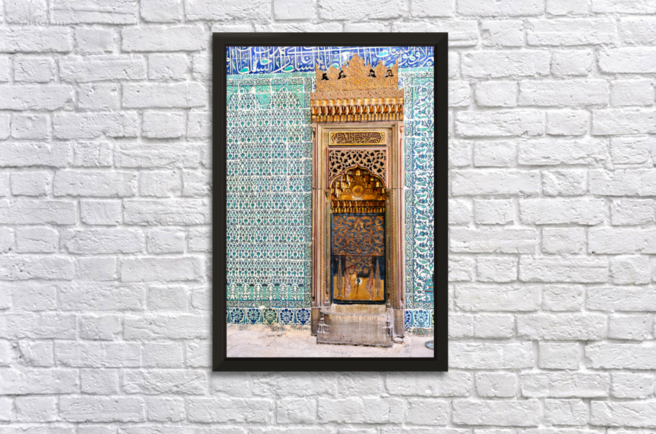 "Water fountain at Topkapi Palace in Istanbul Turkey" in a framed print.