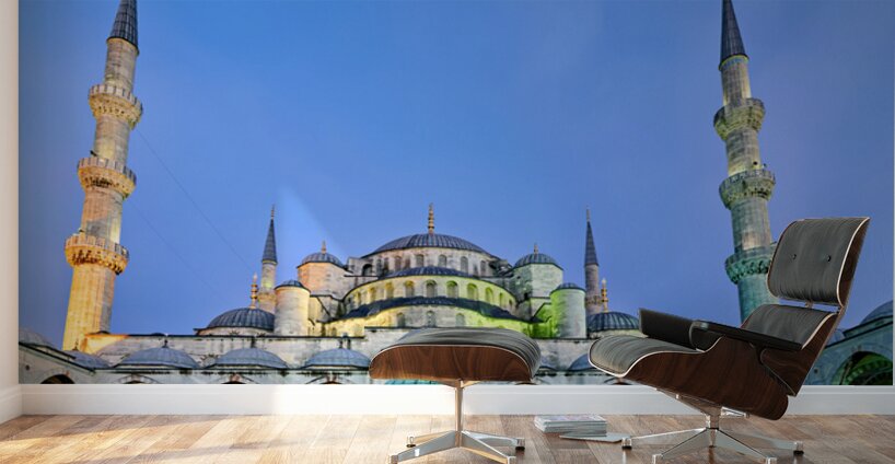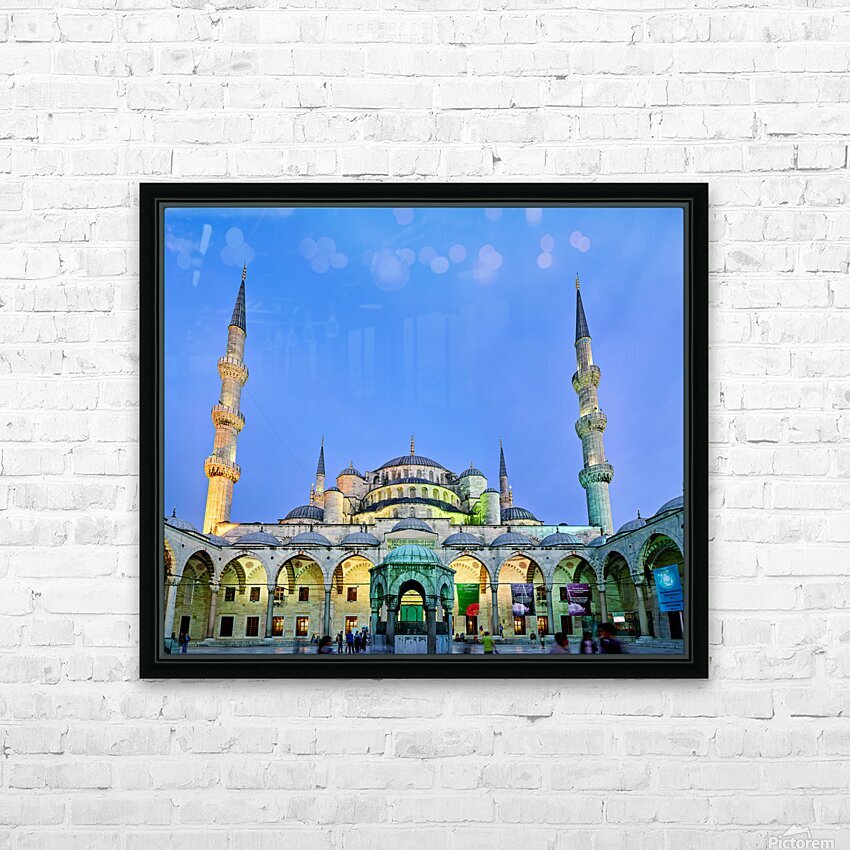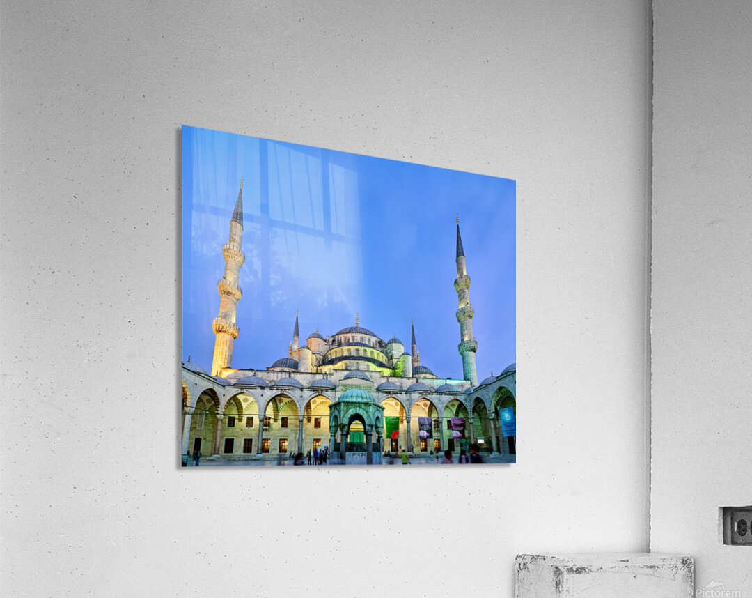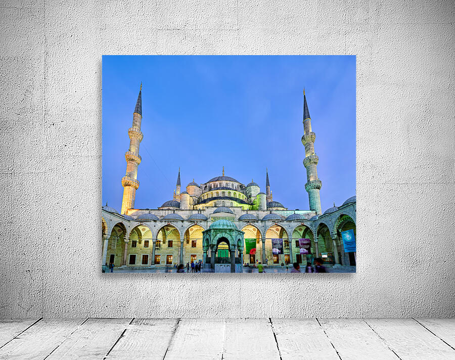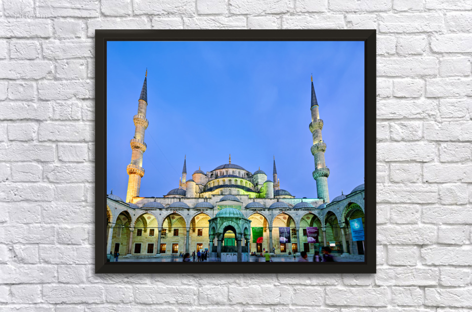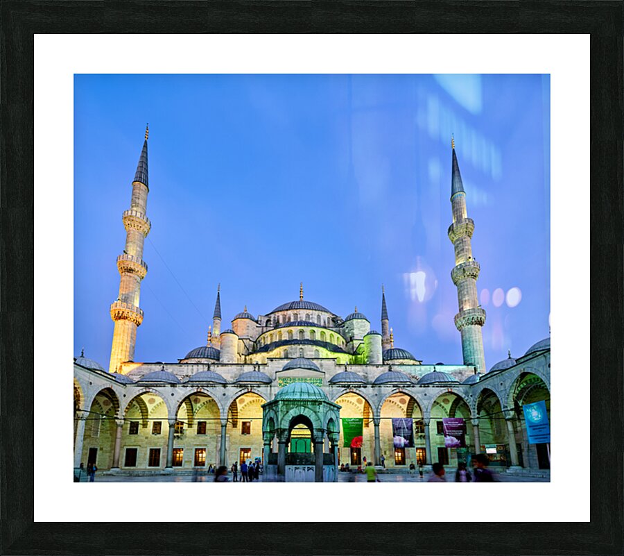 "Sunset view of the Blue Mosque in Istanbul Turkey" in a framed print.