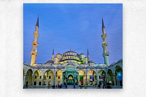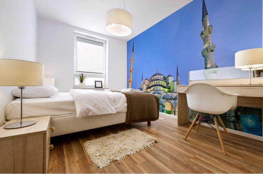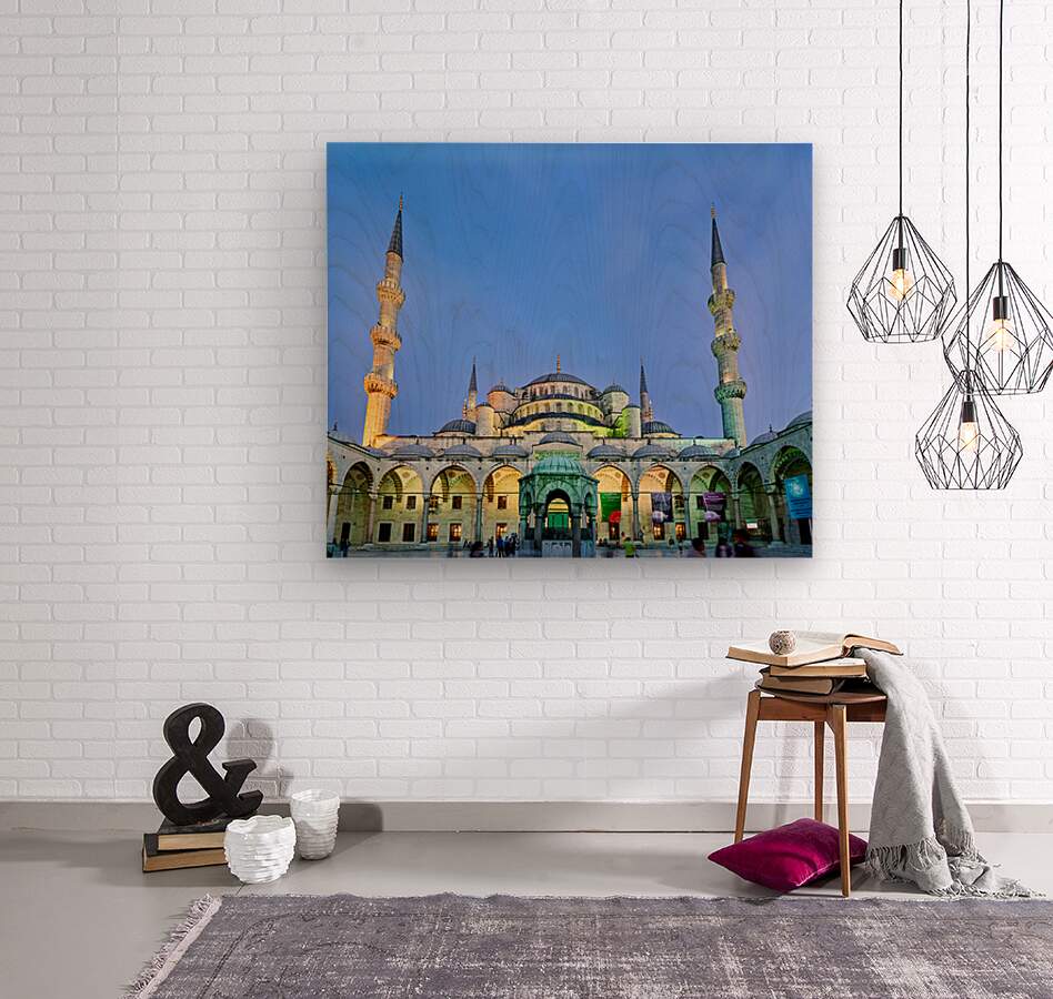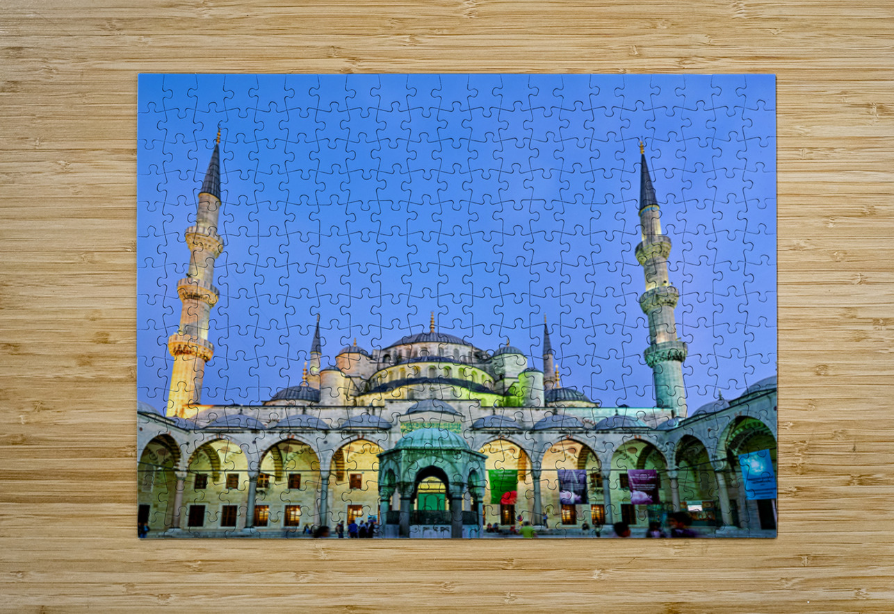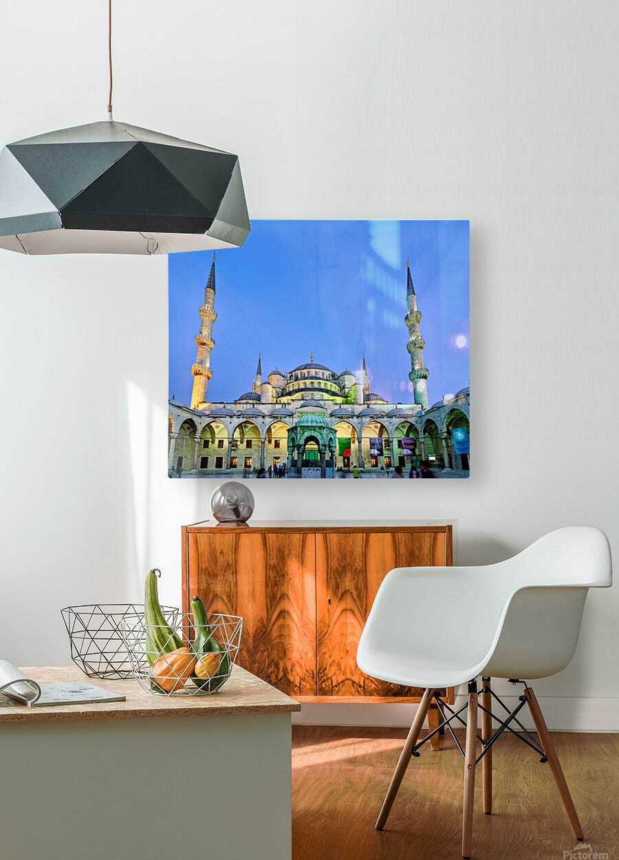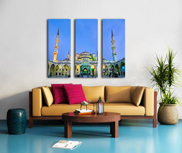 "Sunset view of the Blue Mosque in Istanbul Turkey" in a framed print.
