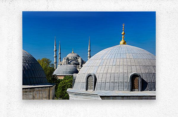 ABOUT THIS ARTWORK: BLUE MOSQUE DOMES UNDER CLEAR SKY IN ISTANBUL