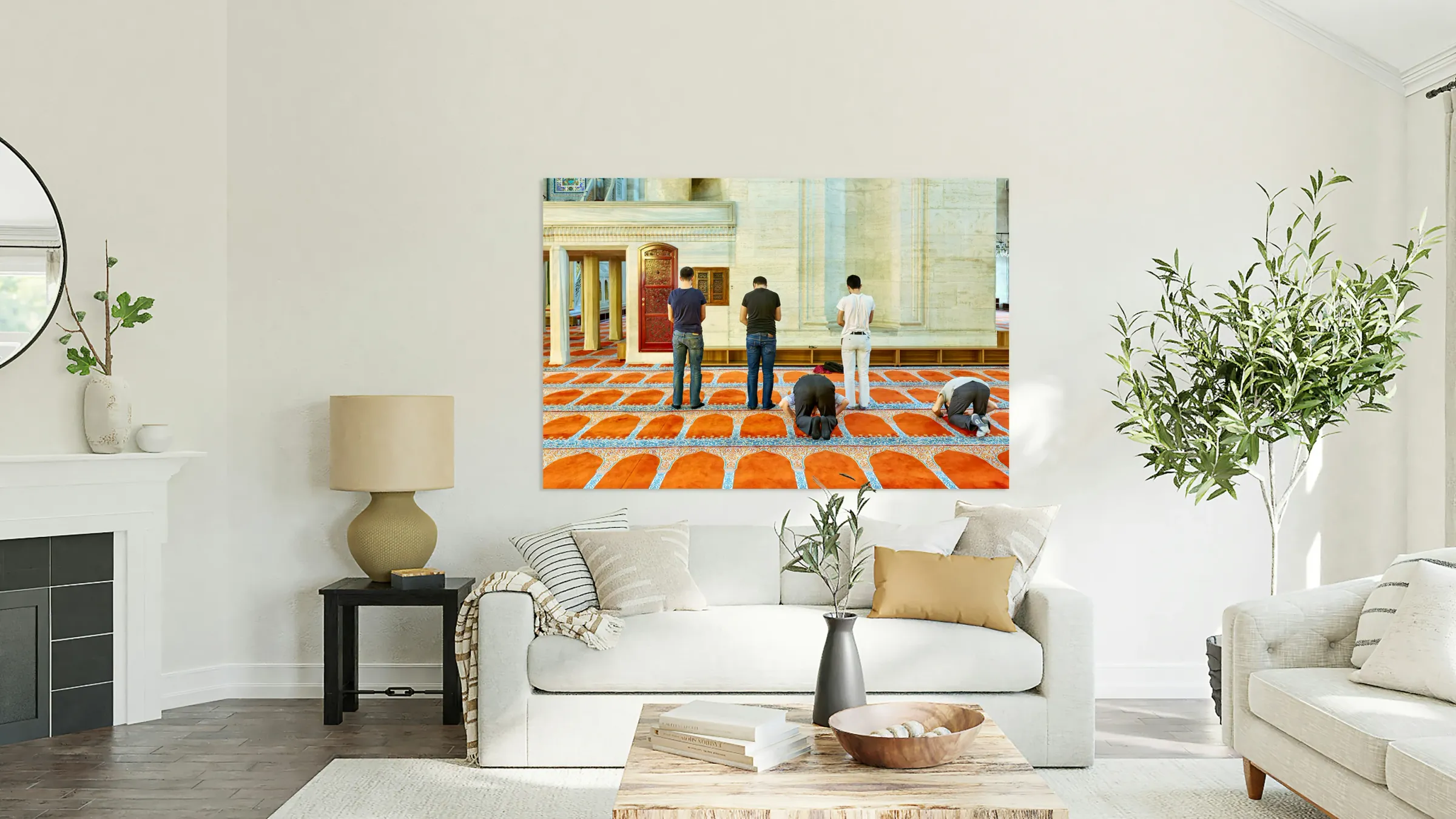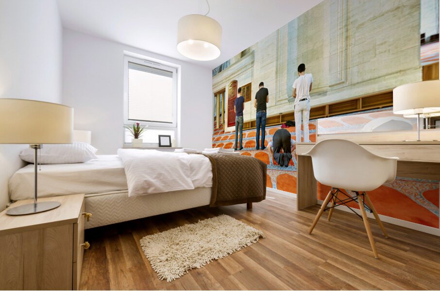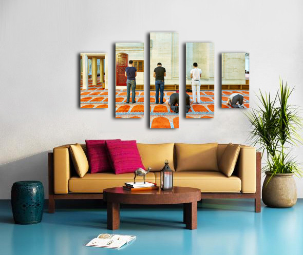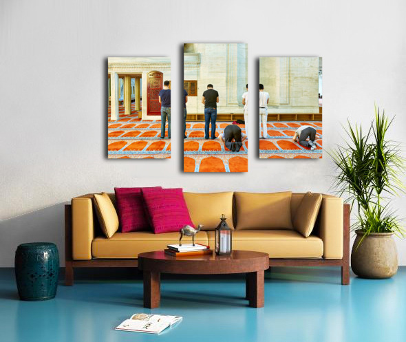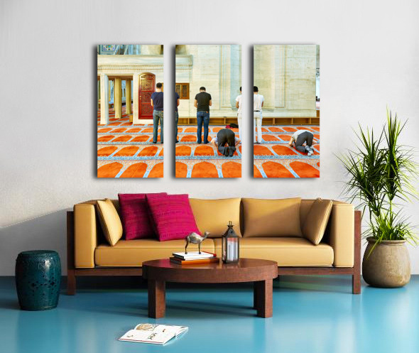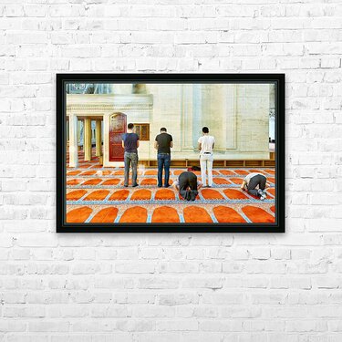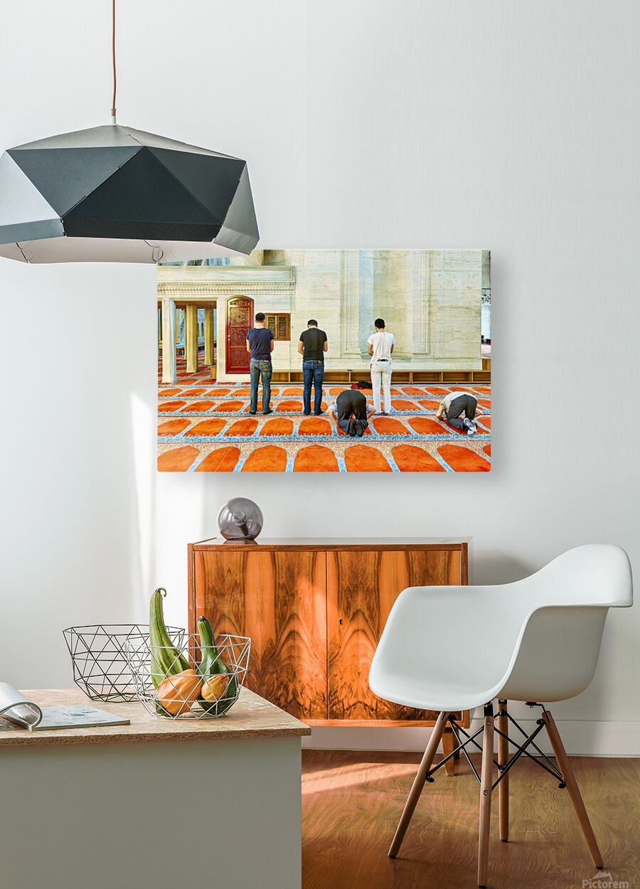 ABOUT THIS ARTWORK: PEOPLE PRAY INSIDE SULEYMANIYE MOSQUE IN ISTANBUL TURKEY
