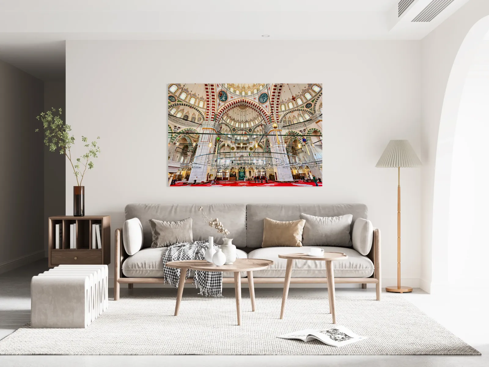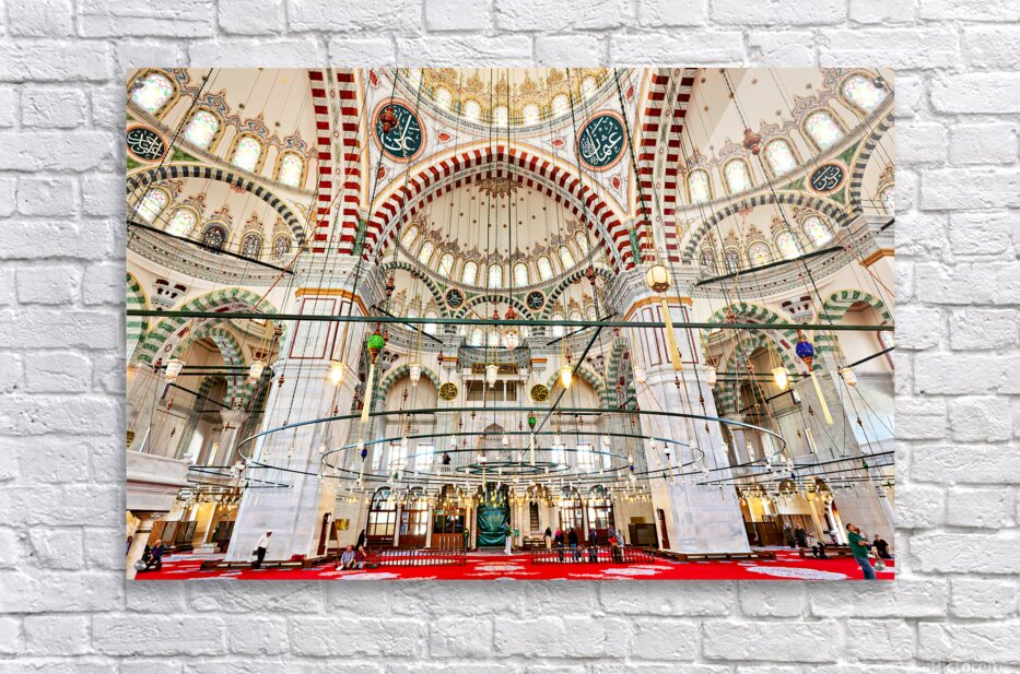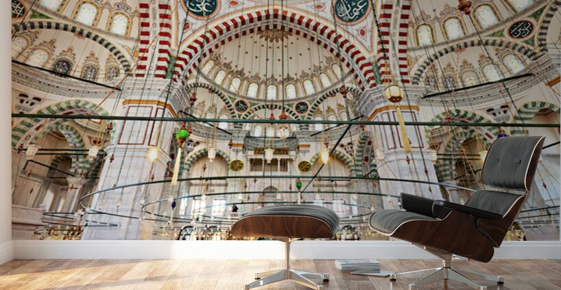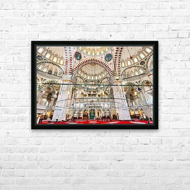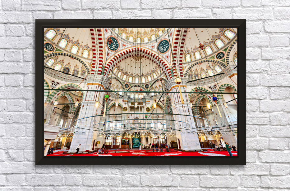"Fatih Mosque interior view in Istanbul Turkey" in a framed print.