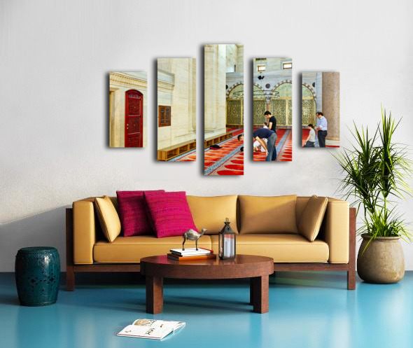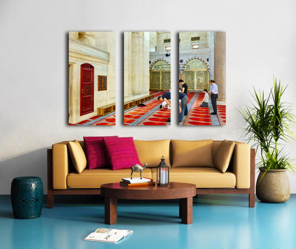 ABOUT THIS ARTWORK: PEOPLE PRAY INSIDE SULEYMANIYE MOSQUE IN ISTANBUL TURKEY
