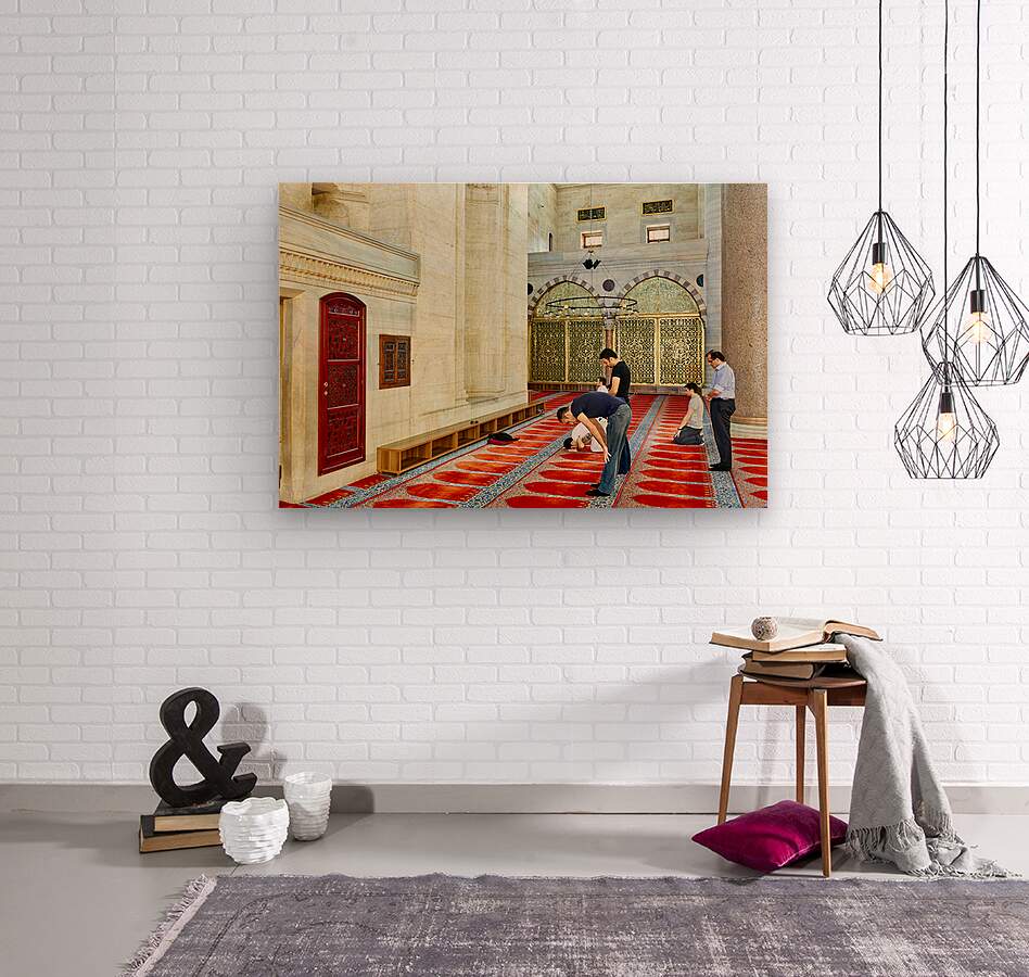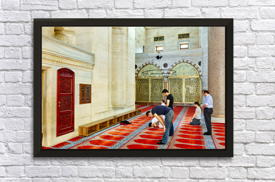 "People pray inside Suleymaniye Mosque in Istanbul Turkey" in a framed print.