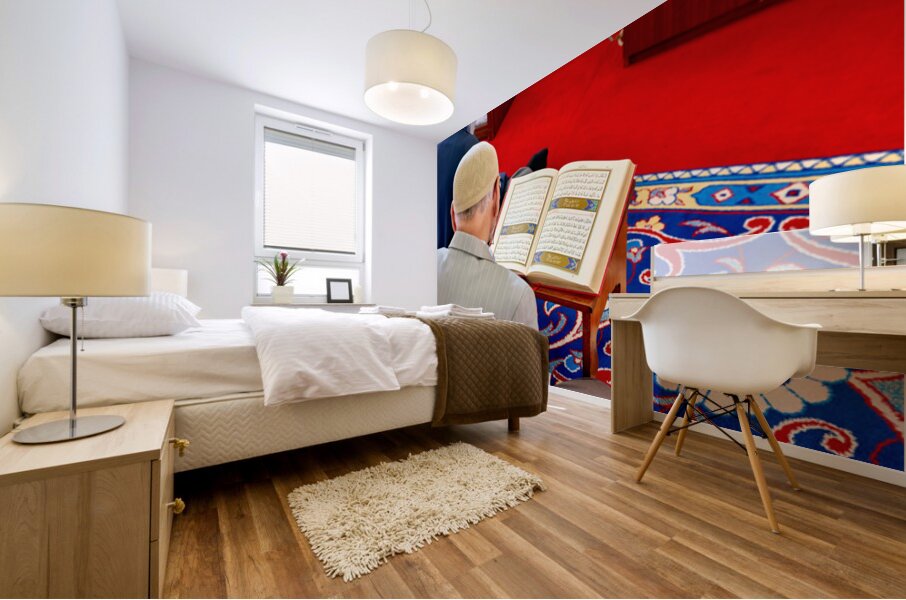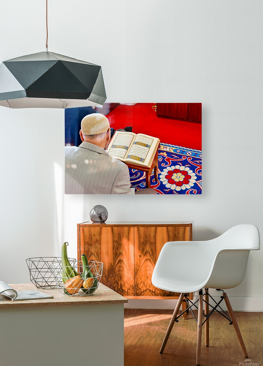 ABOUT THIS ARTWORK: MAN READING QURAN INSIDE FATIH MOSQUE IN ISTANBUL TURKEY