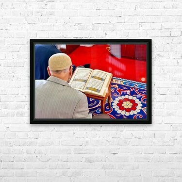 Get this artwork "Man reading Quran inside Fatih Mosque in Istanbul Turkey" in a framed print.
