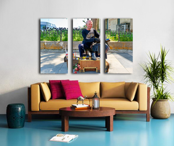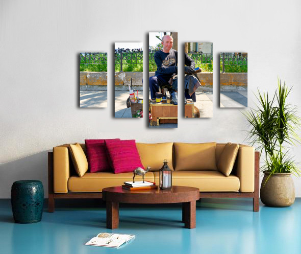 Get this artwork "Shoeblack working on shoes in Istanbul Turkey during the day" in a framed print.