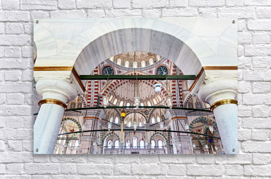 Get this artwork "Visitors observe the interior of Fatih Mosque in Istanbul" in a framed print.