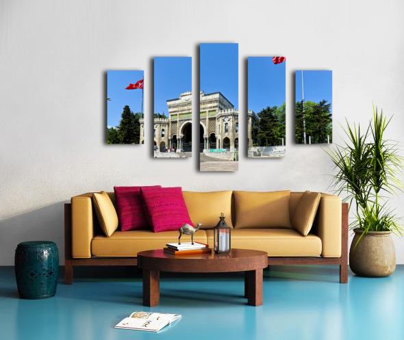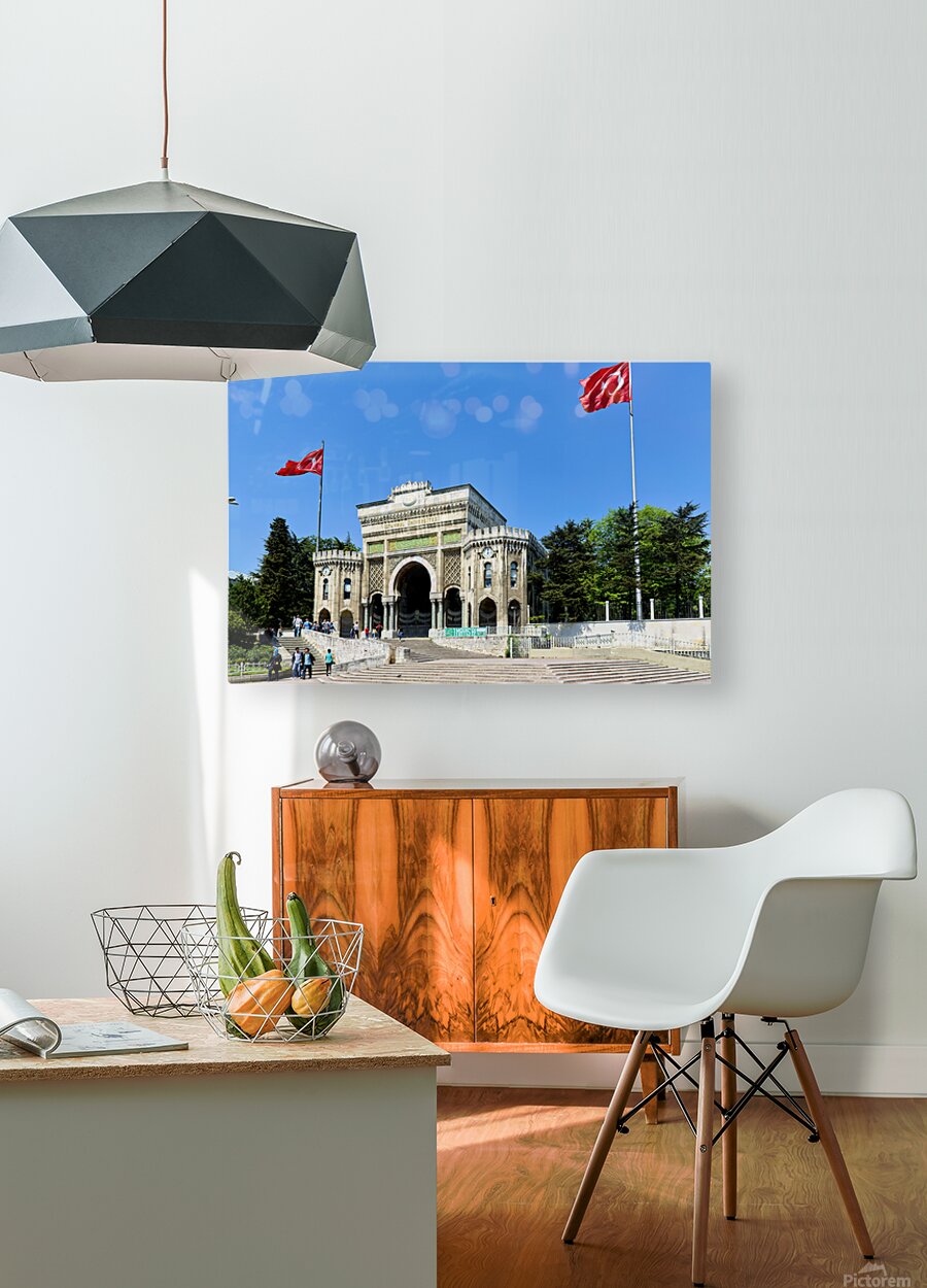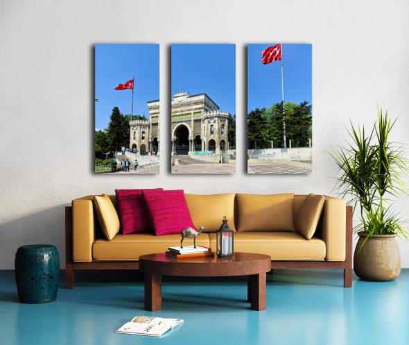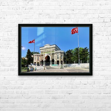 Get this artwork "Historic university building in Istanbul Turkey with flags" in a framed print.