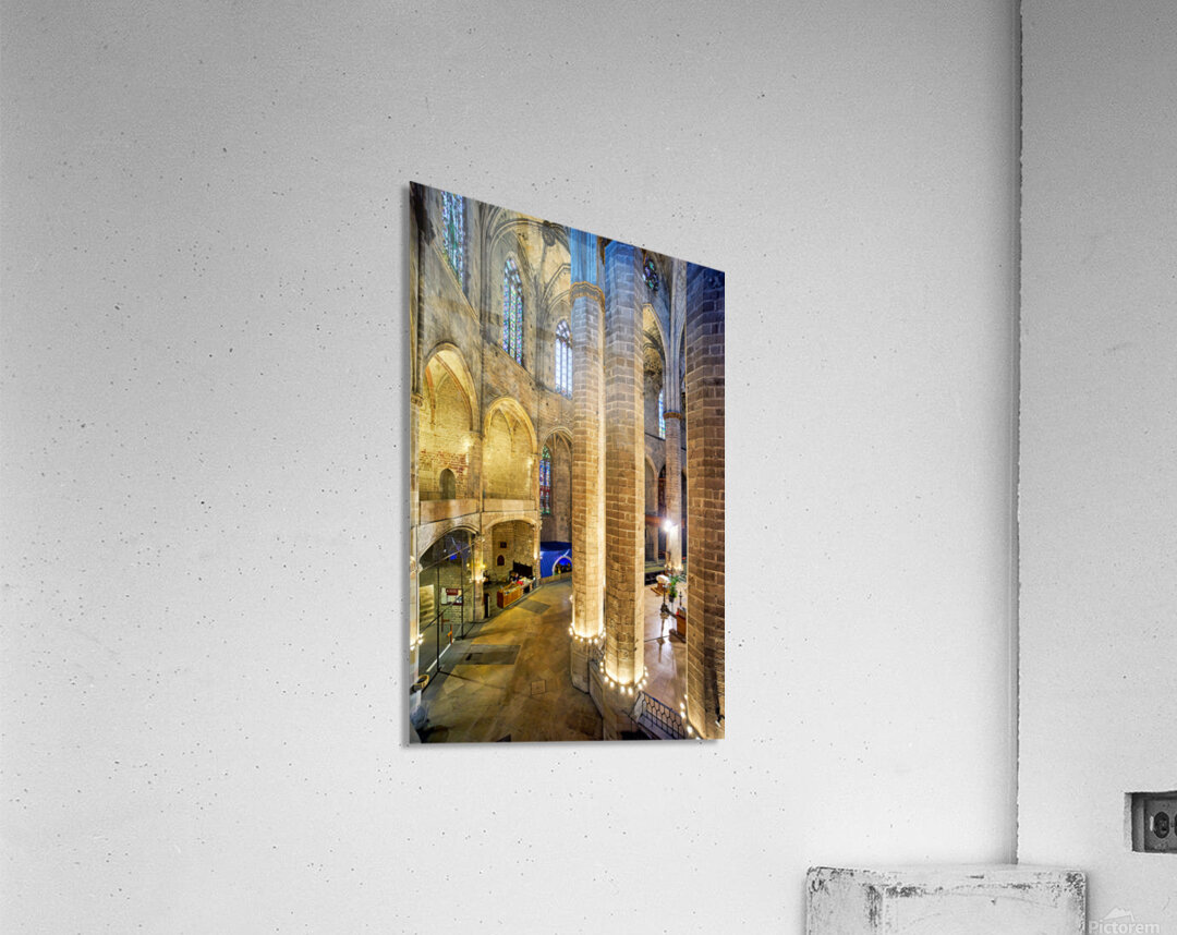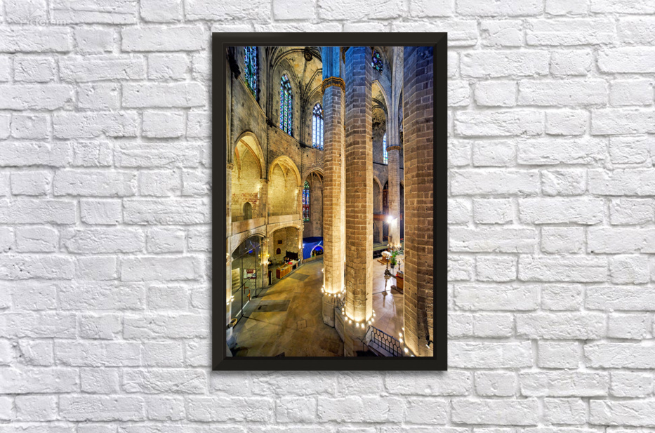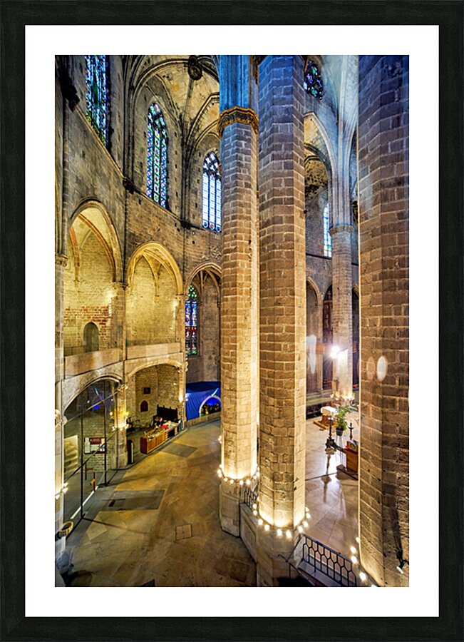 "Visit to Santa Maria del Mar church in Barcelona Spain" in a framed print.
