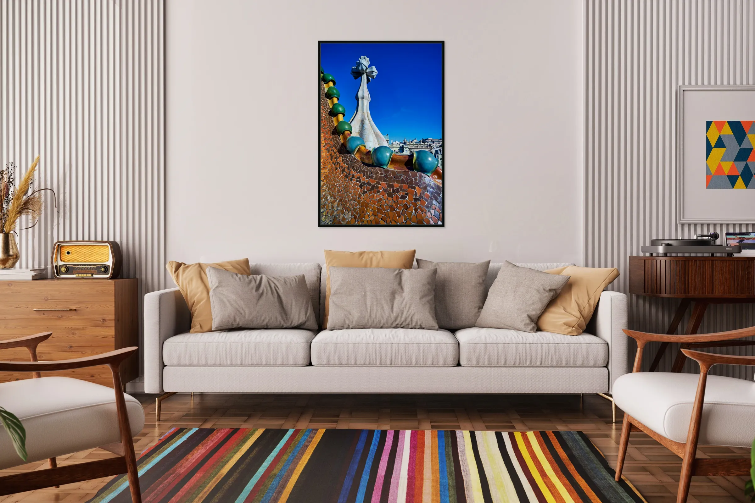 Exploring Casa Batllo in Barcelona under a clear sky Frame print