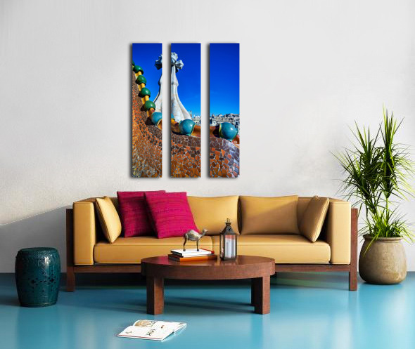 Get this artwork "Exploring Casa Batllo in Barcelona under a clear sky" in a framed print.