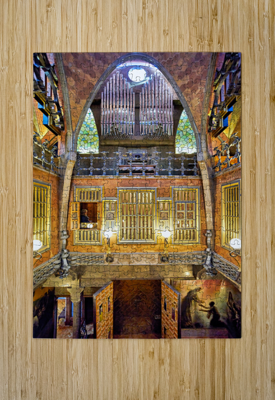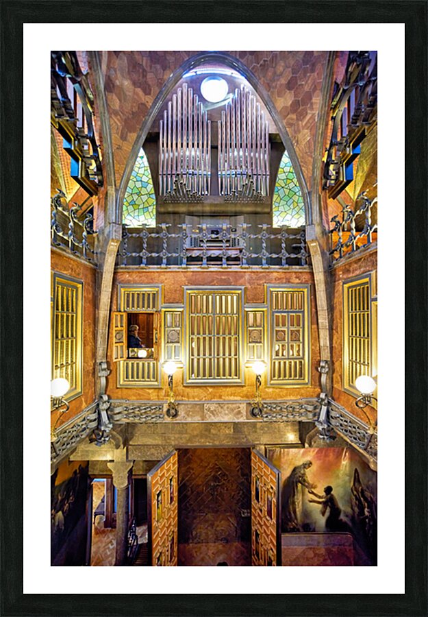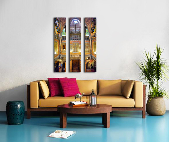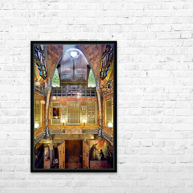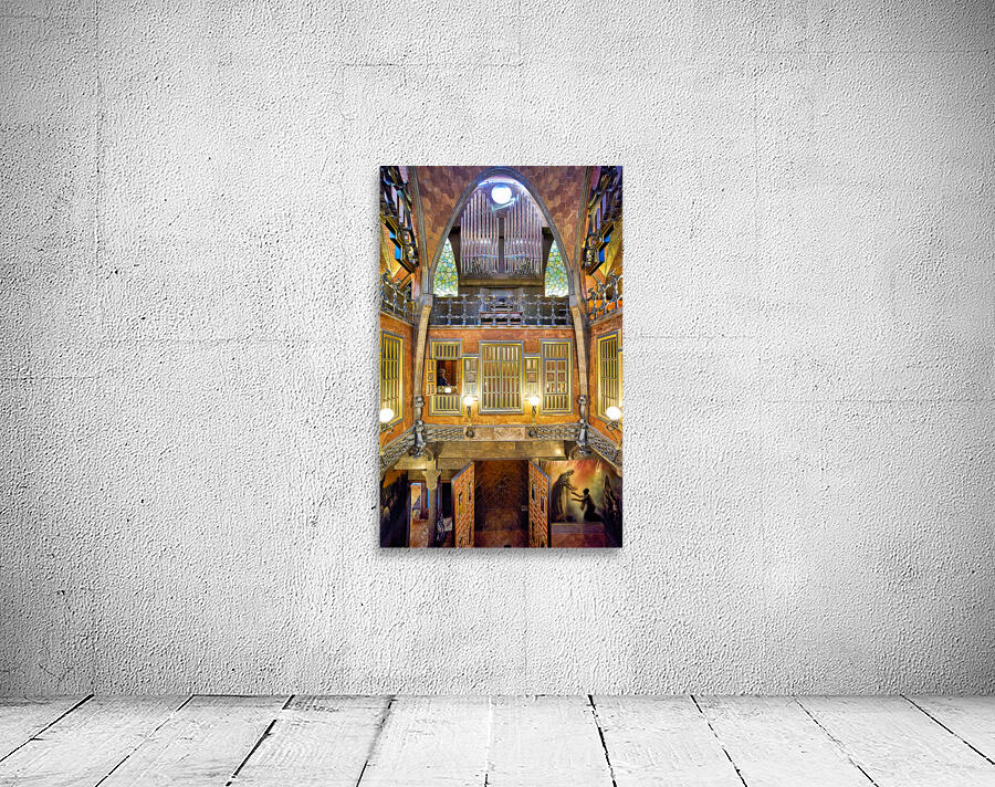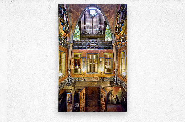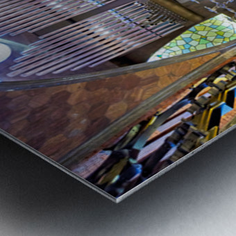 Visitors explore the unique interior of Palau Guell in Barcelona. Gaudis design features distinct patterns and light play.