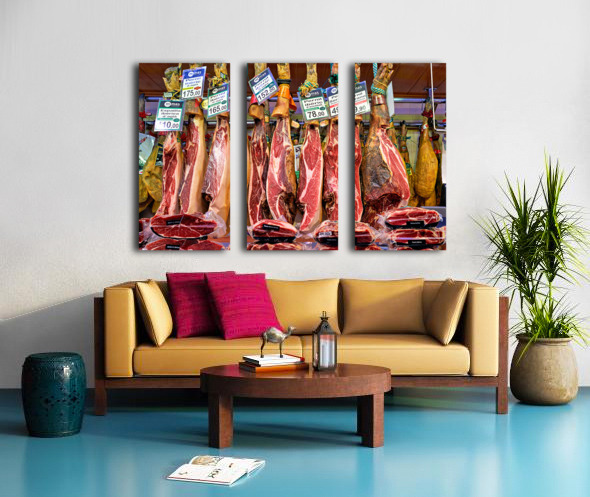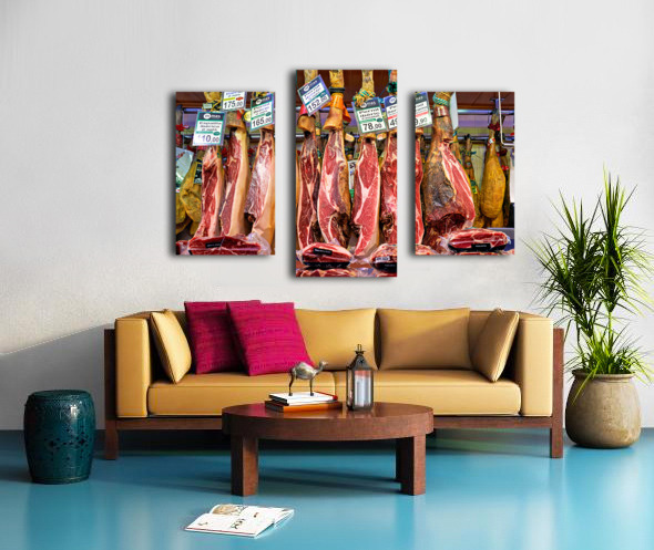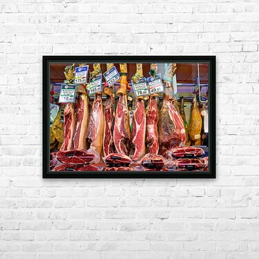 Get this artwork "Jamon Iberico displayed in Mercat de Sant Josep de la Boqueria" in a framed print.