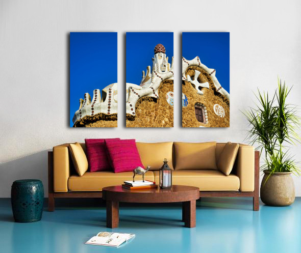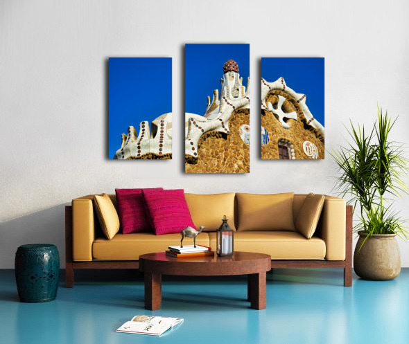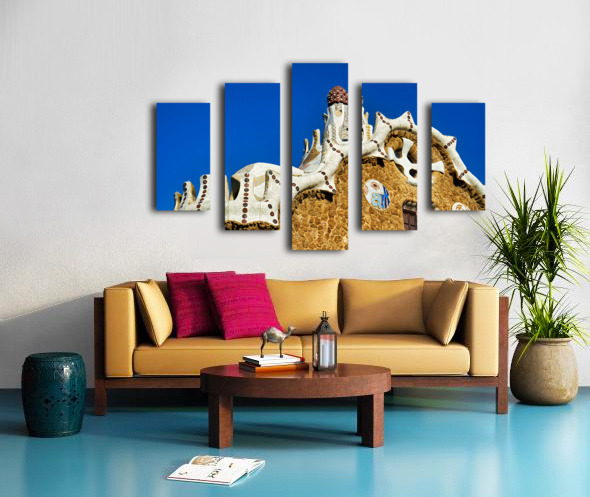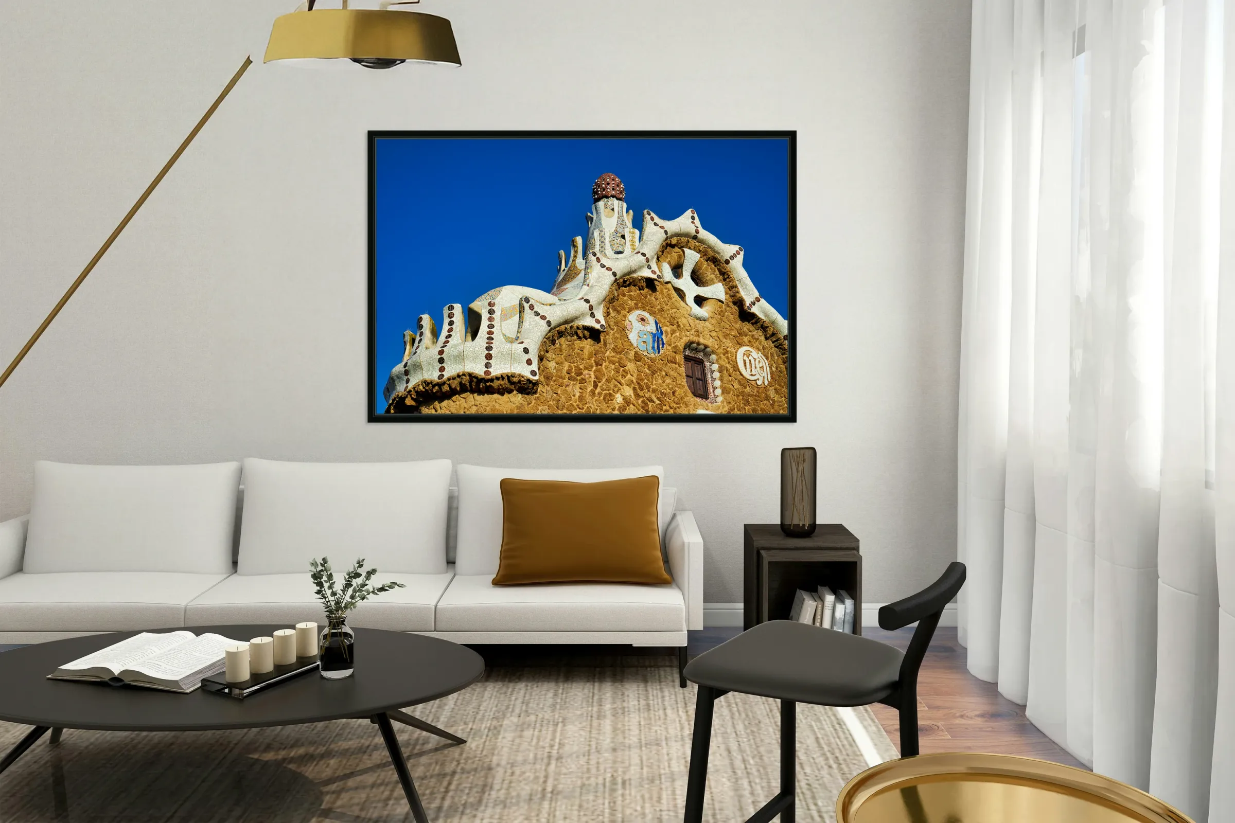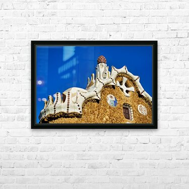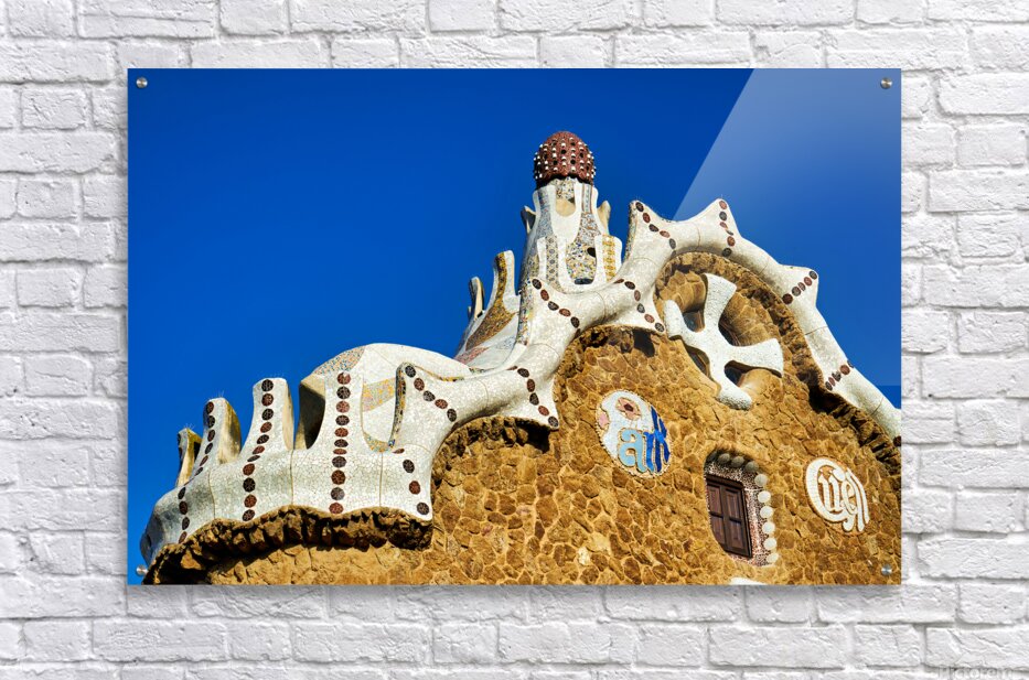Get this artwork "Gable of the fairytale house in park guell barcelona" in a framed print.