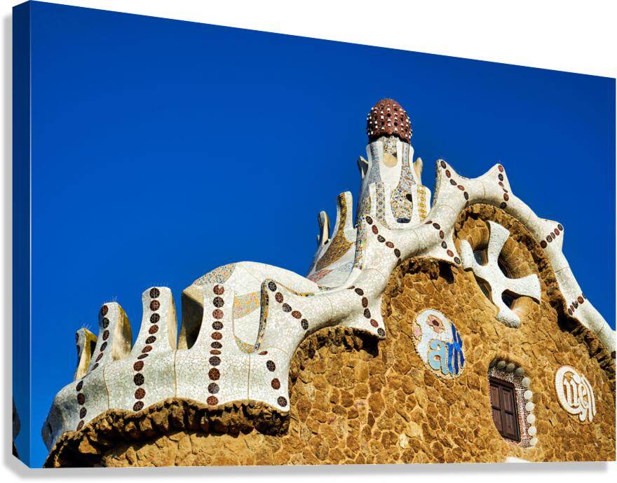 ABOUT THIS ARTWORK: GABLE OF THE FAIRYTALE HOUSE IN PARK GUELL BARCELONA