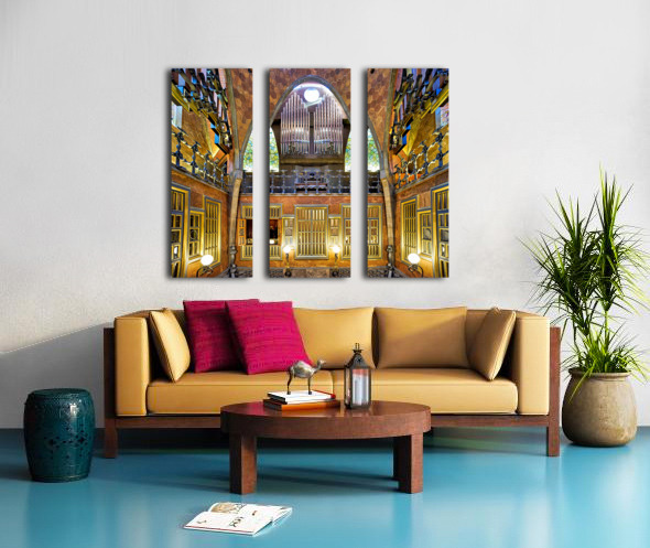 Visitors explore the intricate design of Palau Guell by Gaudi in Barcelona. The interior features unique architecture and detailed craftsmanship.