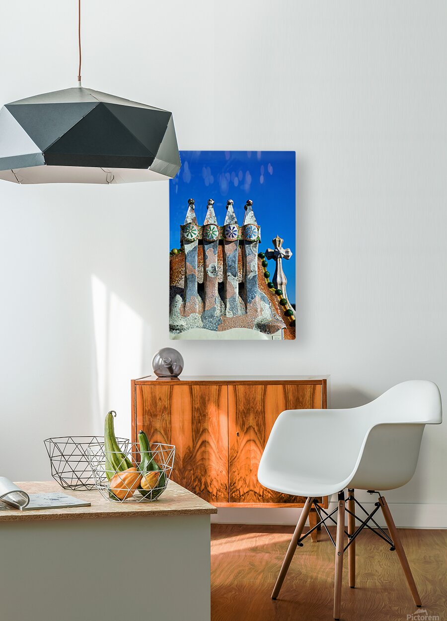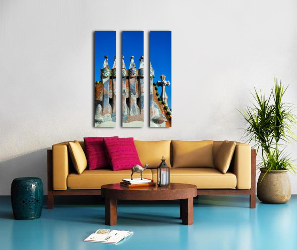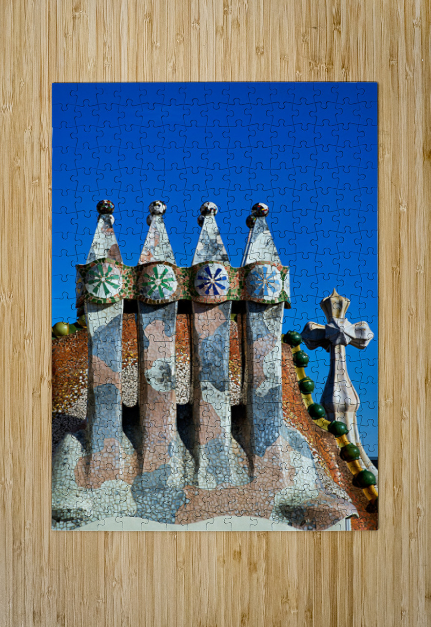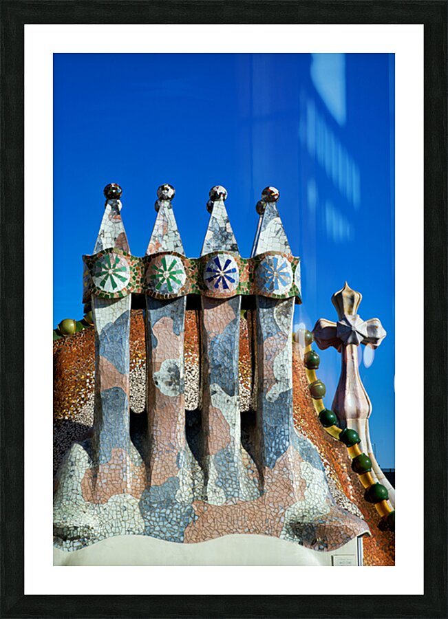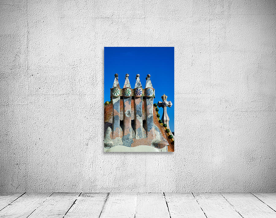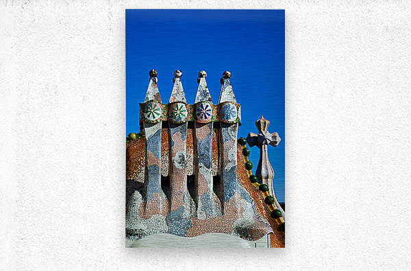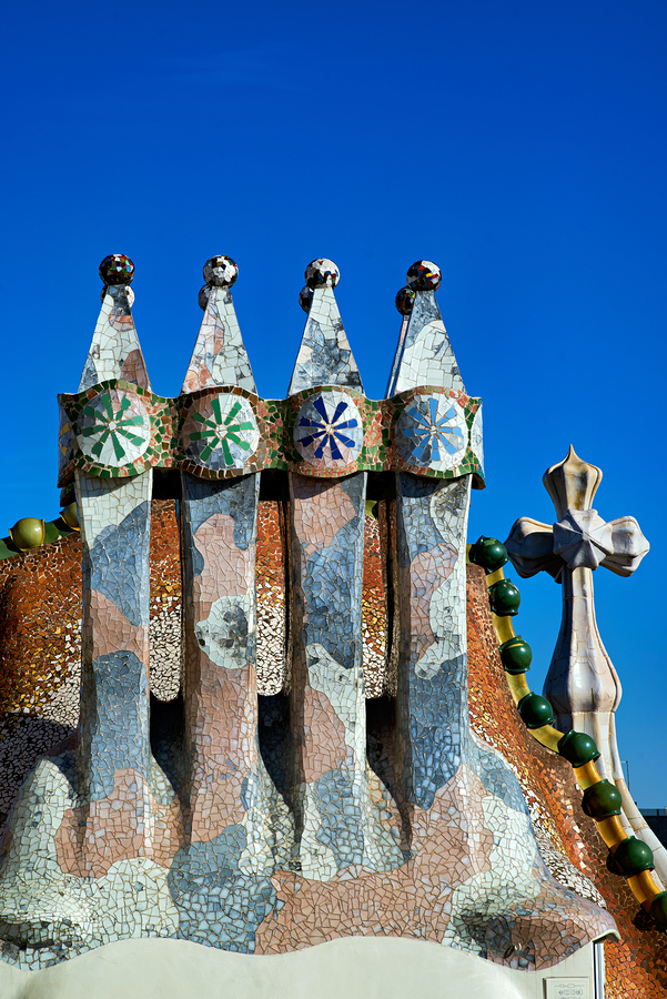 Visit Casa Batllo a famous building in Barcelona. This work of Antoni Gaudi shows unique design and colorful tiles under a clear sky.