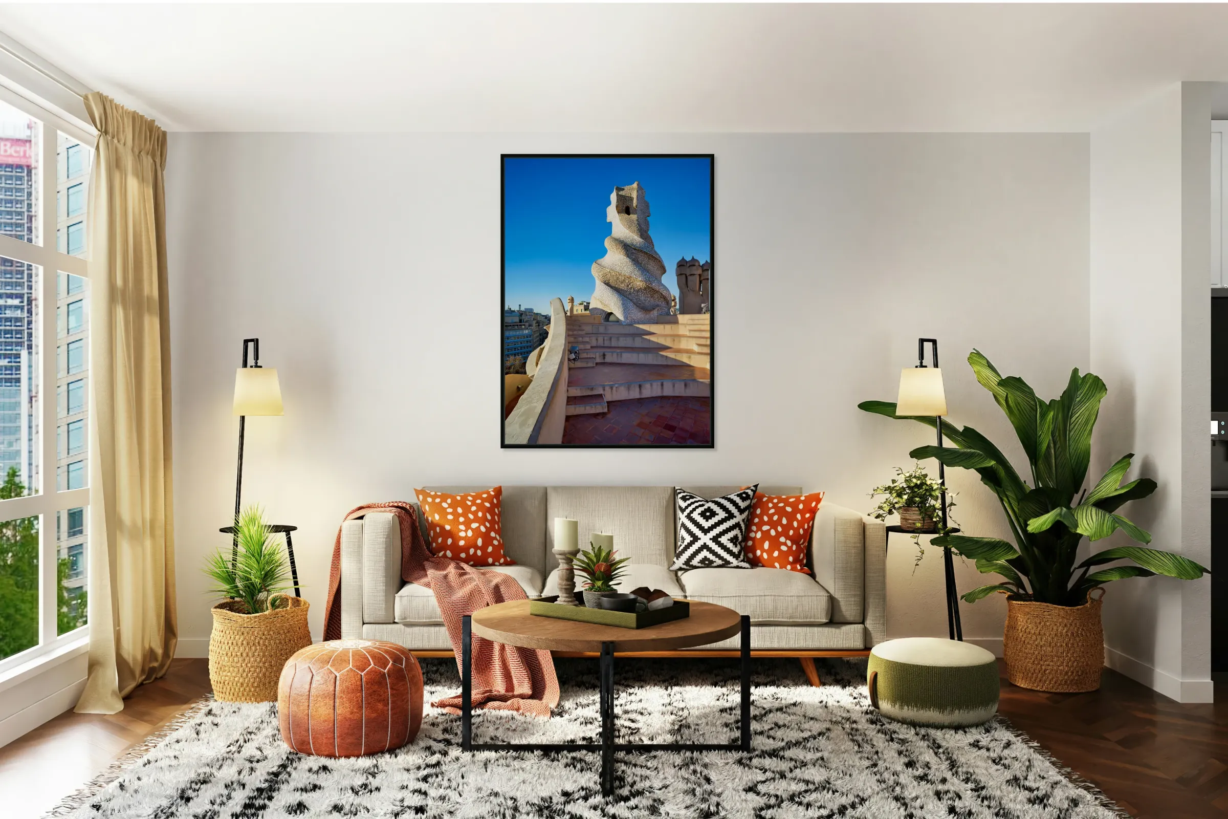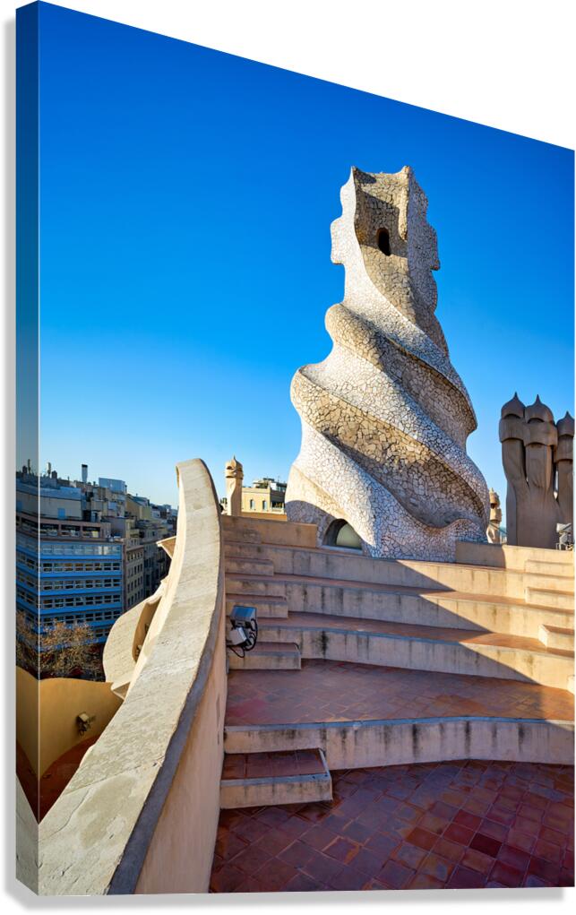 ABOUT THIS ARTWORK: ROOFTOP VIEWS OF CASA MILA IN SUNNY BARCELONA