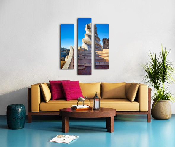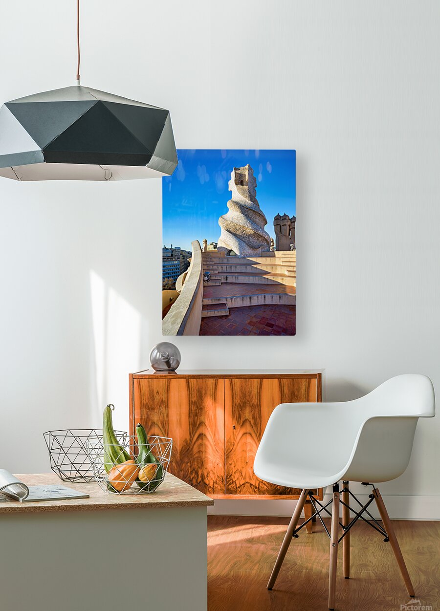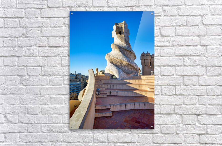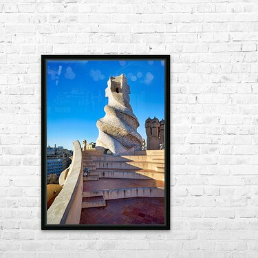 Get this artwork "Rooftop views of Casa Mila in sunny Barcelona" in a framed print.