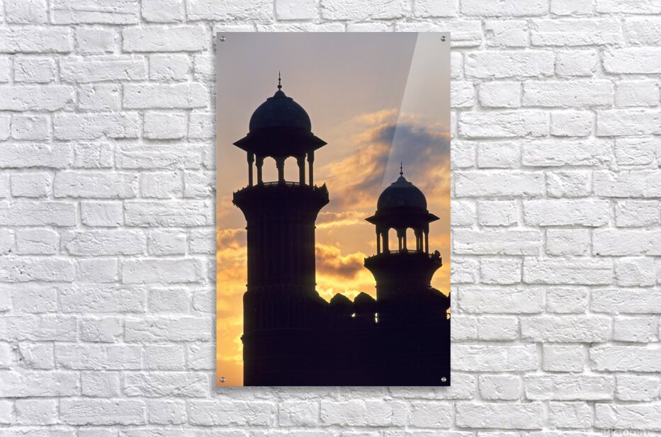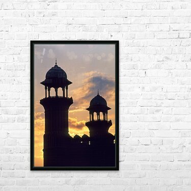 Get this artwork "Badshahi mosque towers at sunset in Lahore" in a framed print.