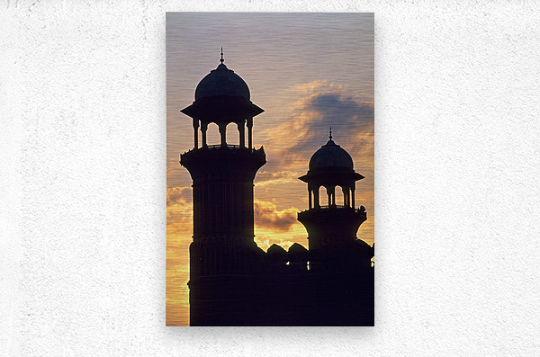ABOUT THIS ARTWORK: BADSHAHI MOSQUE TOWERS AT SUNSET IN LAHORE