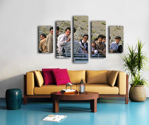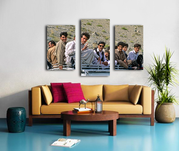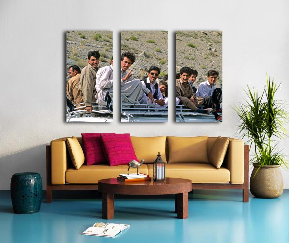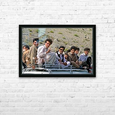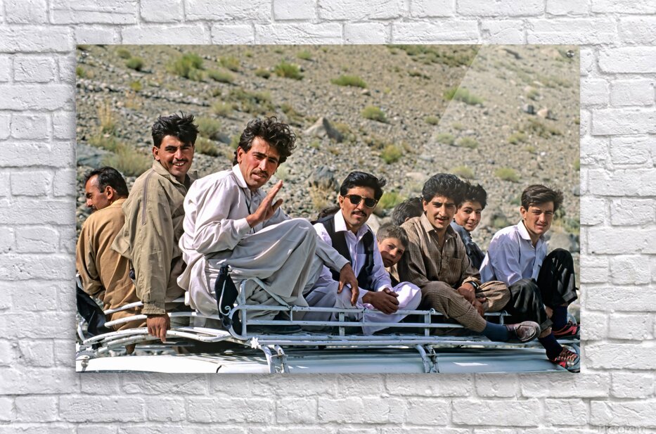 Get this artwork "Group traveling on top of a van in Pakistans mountains" in a framed print.