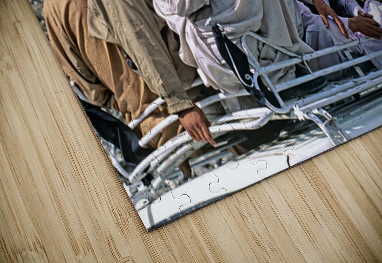 Group traveling on top of a van in Pakistans mountains Marco Brivio Puzzle printing