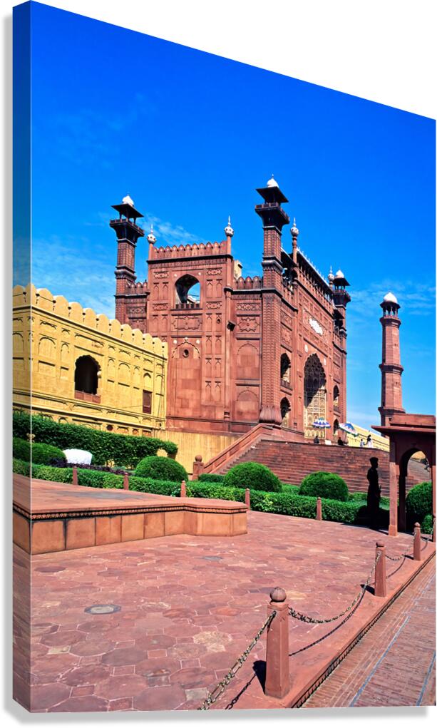 ABOUT THIS ARTWORK: MOSQUE STANDS TALL IN LAHORE WITH CLEAR BLUE SKY ABOVE