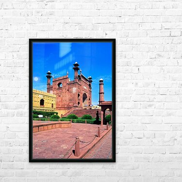 Mosque stands tall in Lahore with clear blue sky above Picture Frame Printing