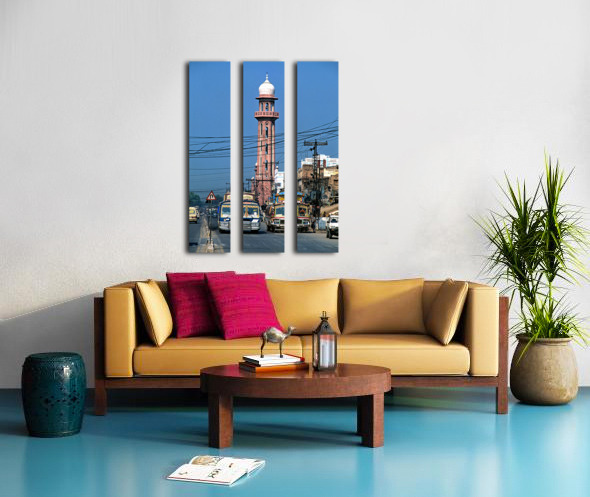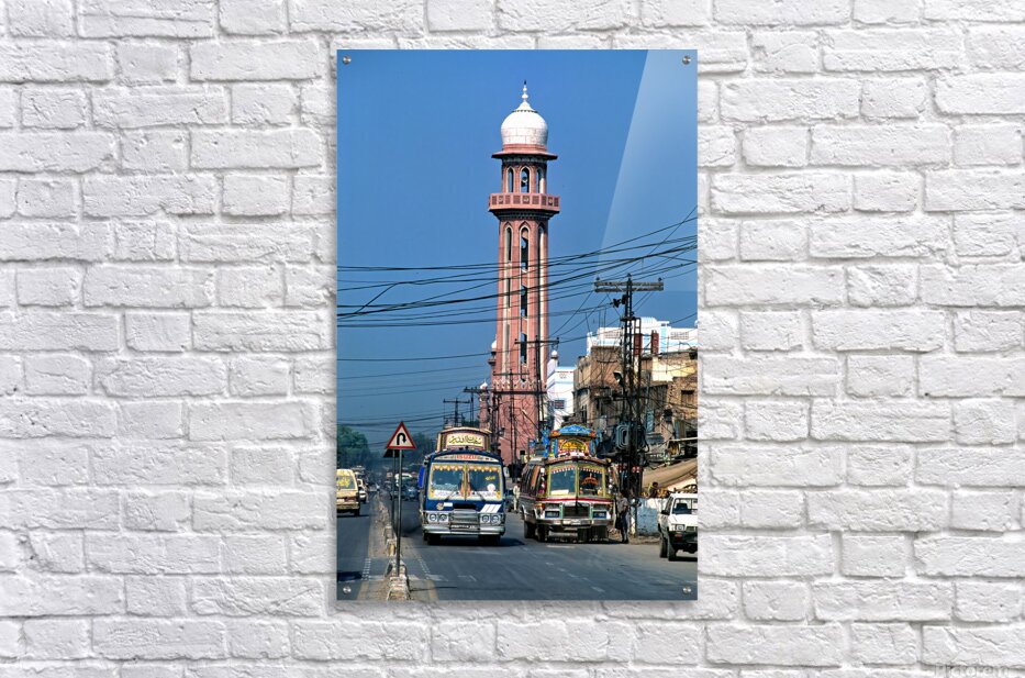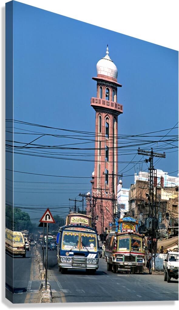 Get this artwork "Busy street scene with tall tower in Peshawar Pakistan" in a framed print.