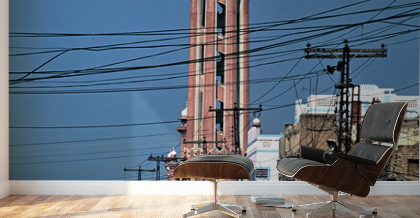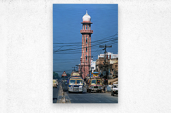 ABOUT THIS ARTWORK: BUSY STREET SCENE WITH TALL TOWER IN PESHAWAR PAKISTAN