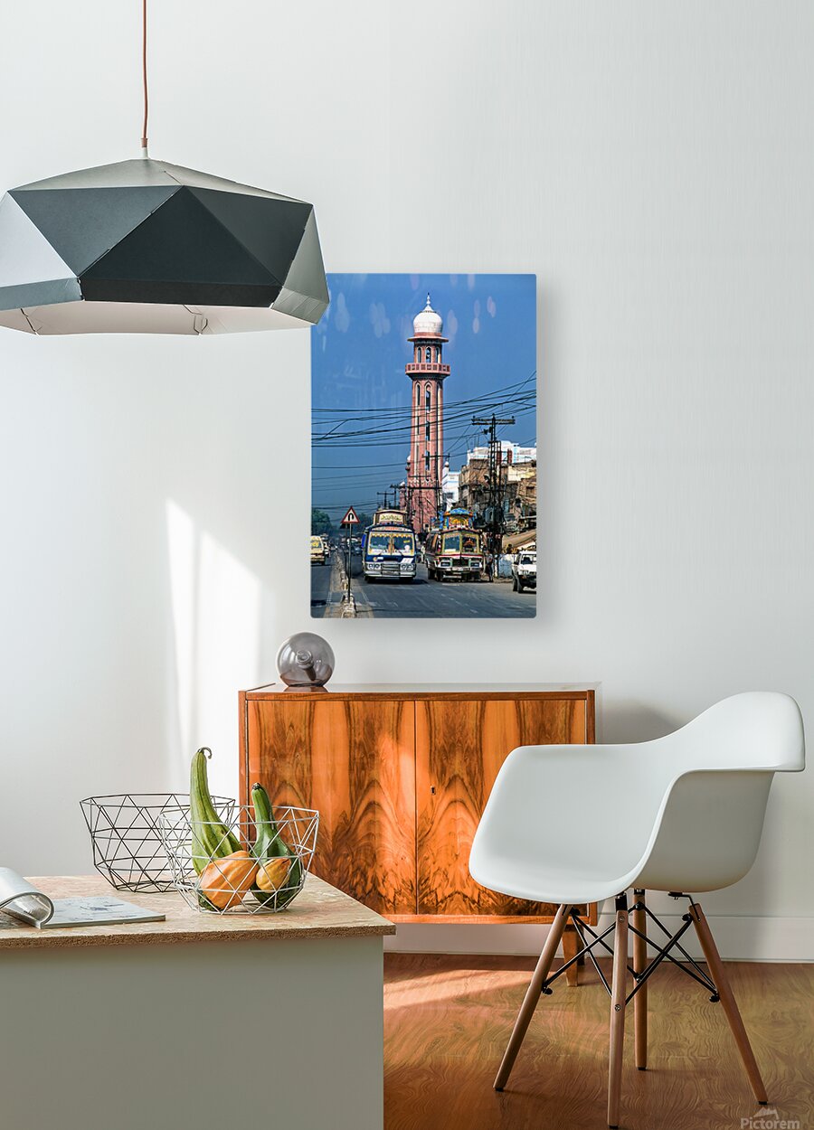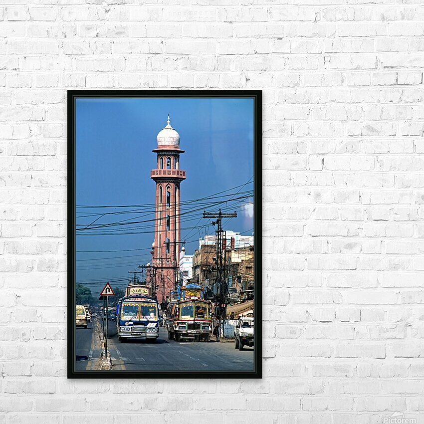 Busy street scene with tall tower in Peshawar Pakistan Picture Frame Printing