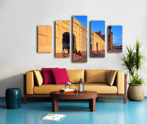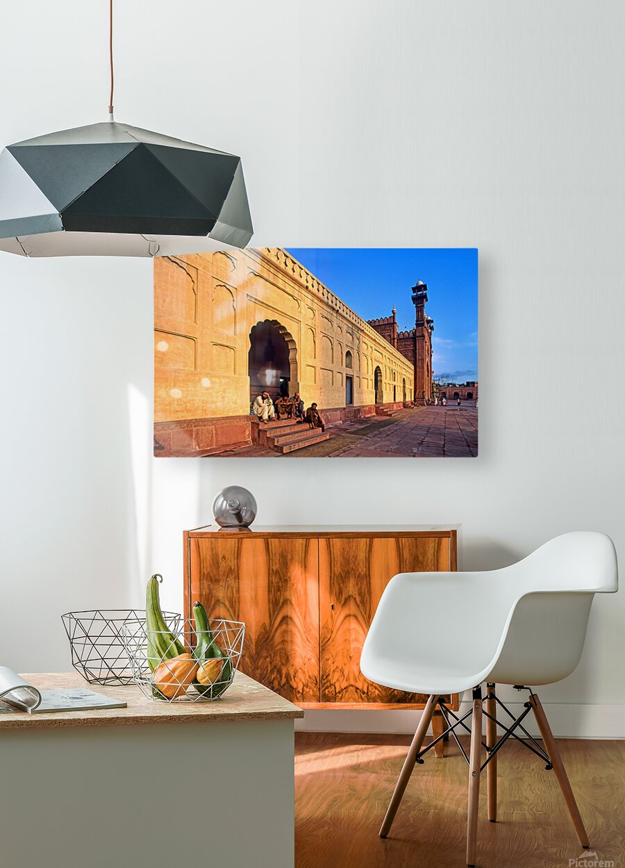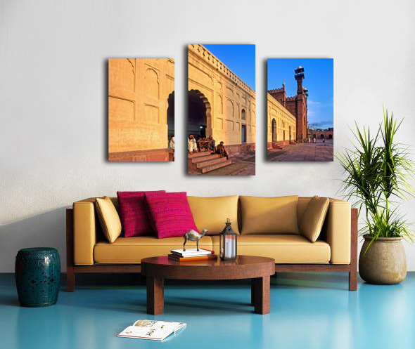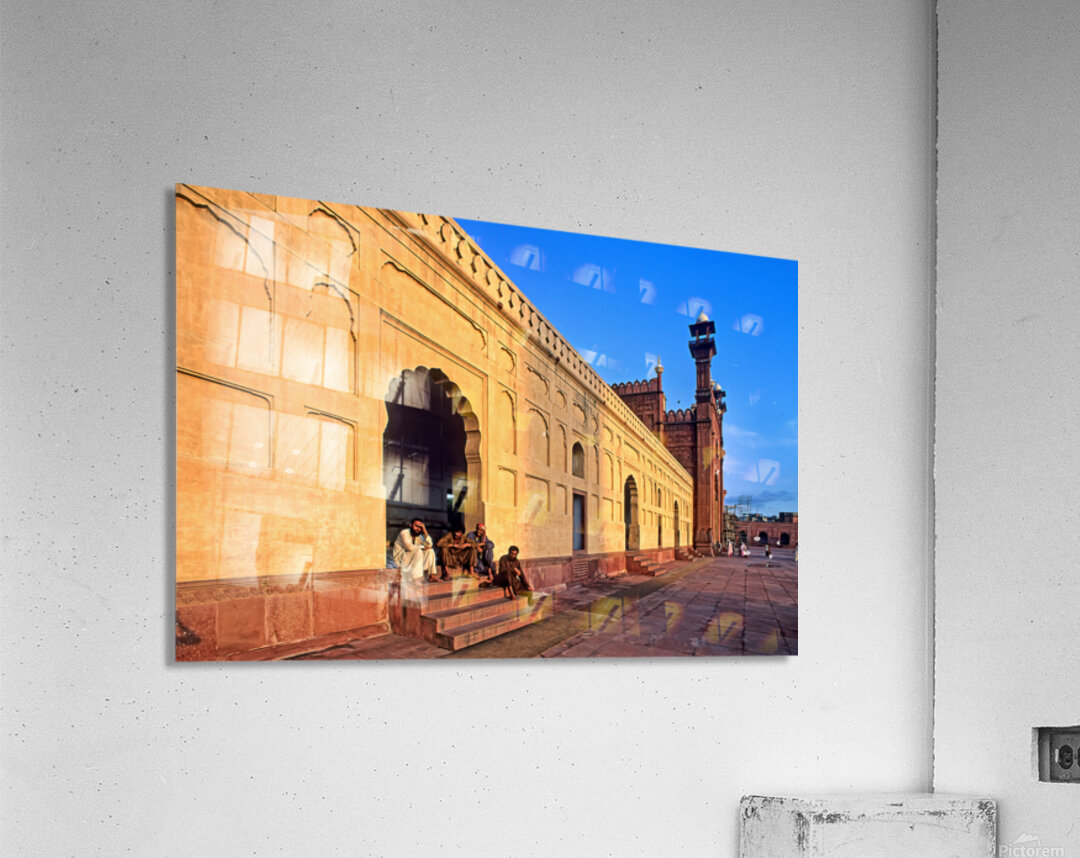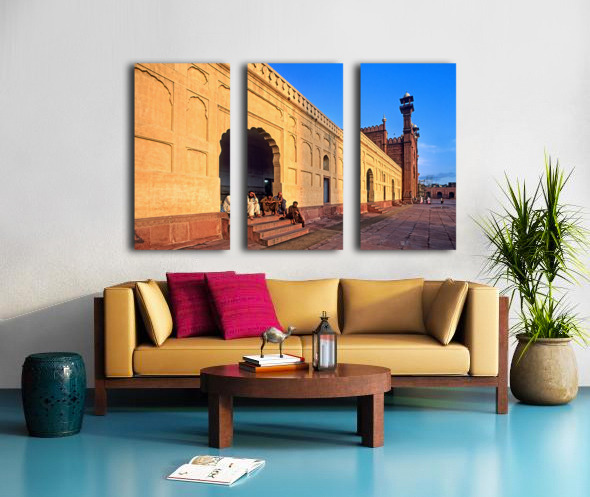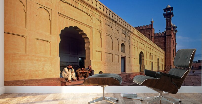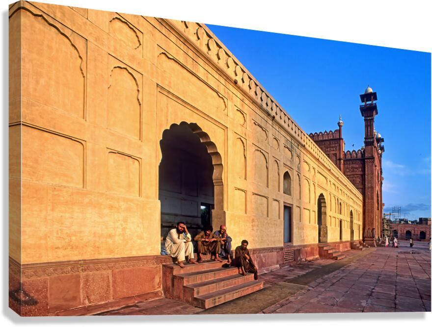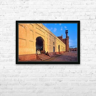 Get this artwork "Visitors rest by Badshahi Mosque during sunset in Lahore" in a framed print.