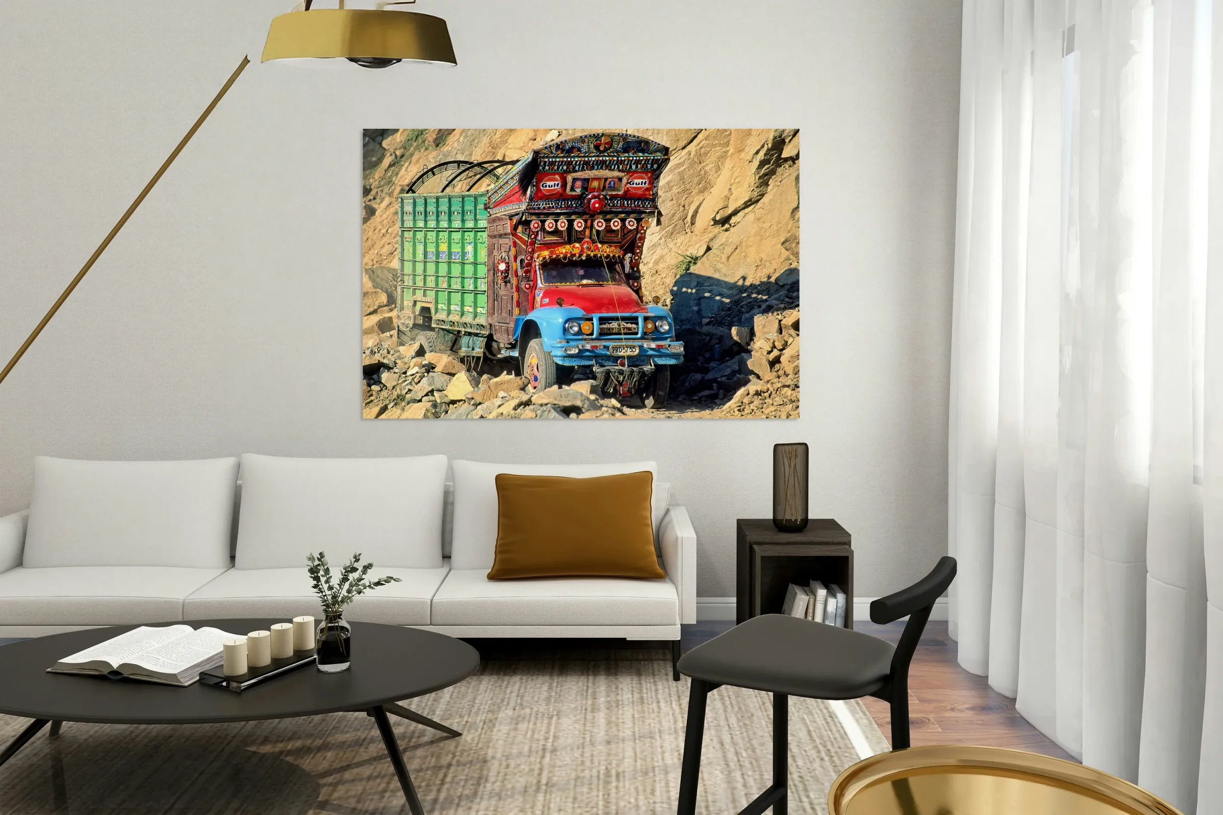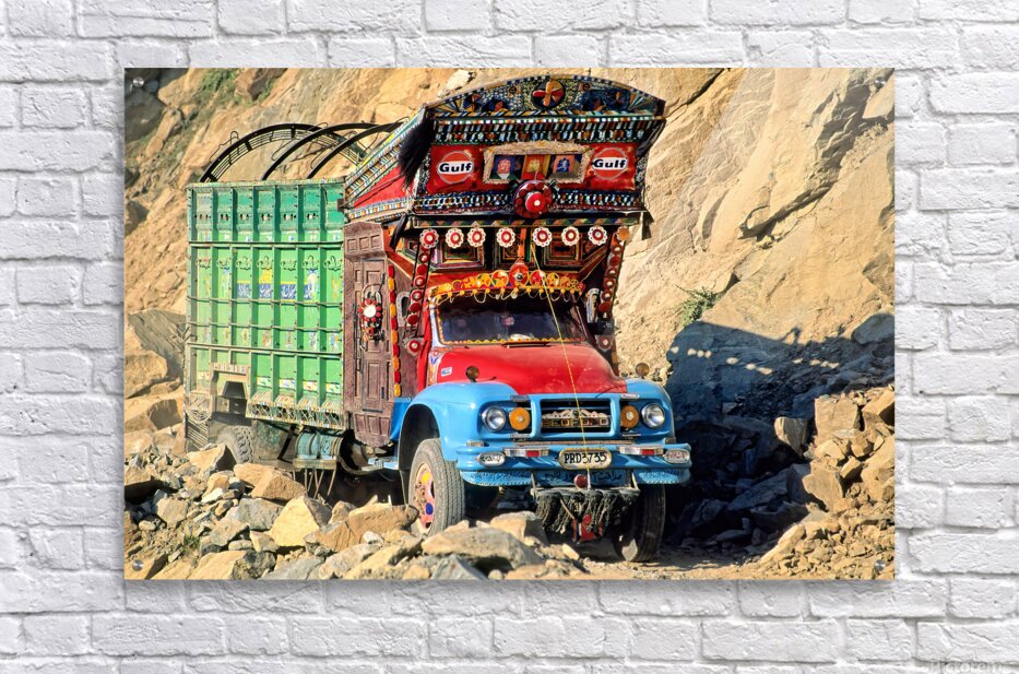 Get this artwork "Trucks travel toward Shandur Pass in Pakistans rugged terrain" in a framed print.