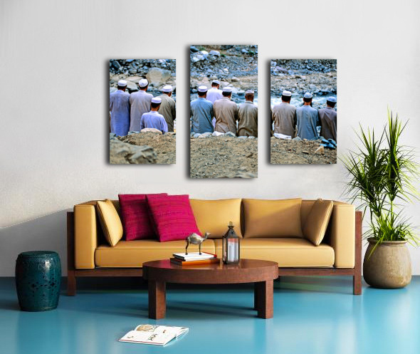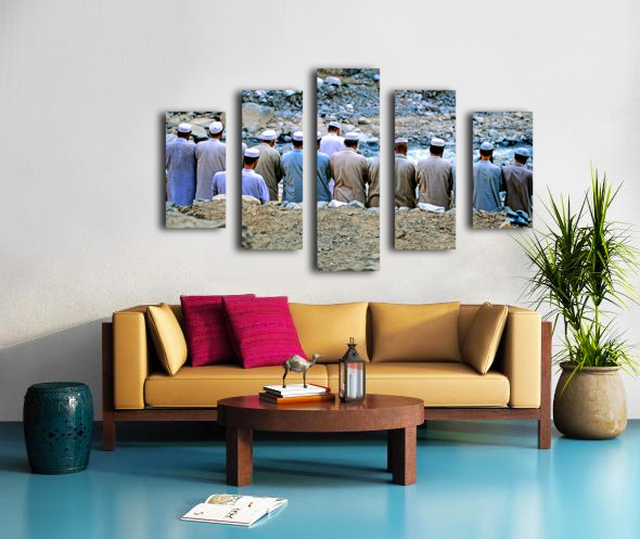 Get this artwork "Muslim men pray outdoors in Pakistan facing Mecca" in a framed print.