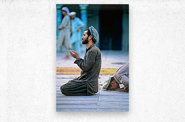ABOUT THIS ARTWORK: PRAYERS IN THE MOSQUE OF CHITRAL PAKISTAN AT SUNSET