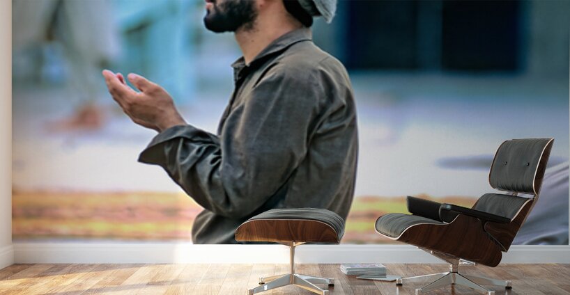 Prayers in the mosque of Chitral Pakistan at sunset Frame print