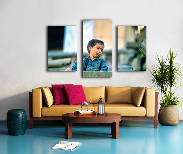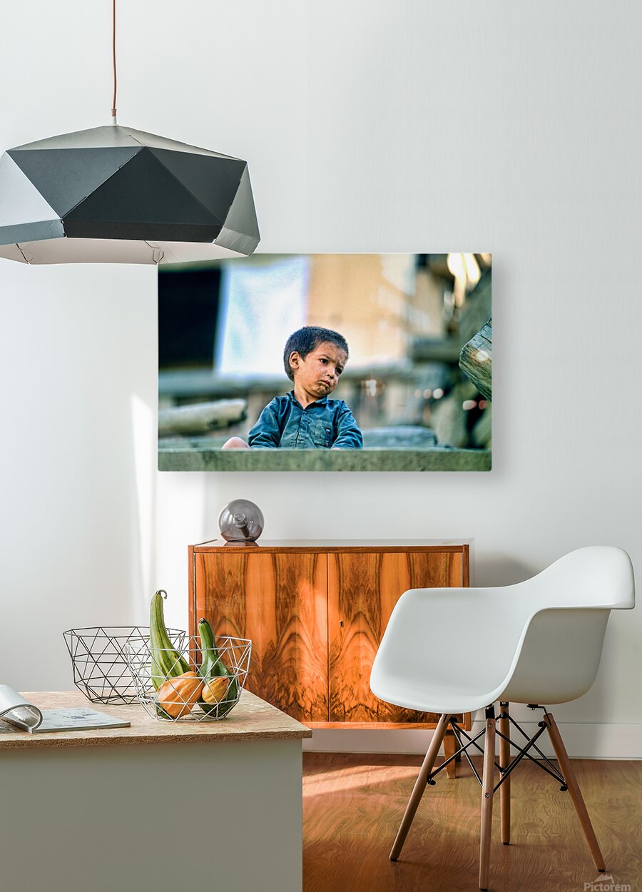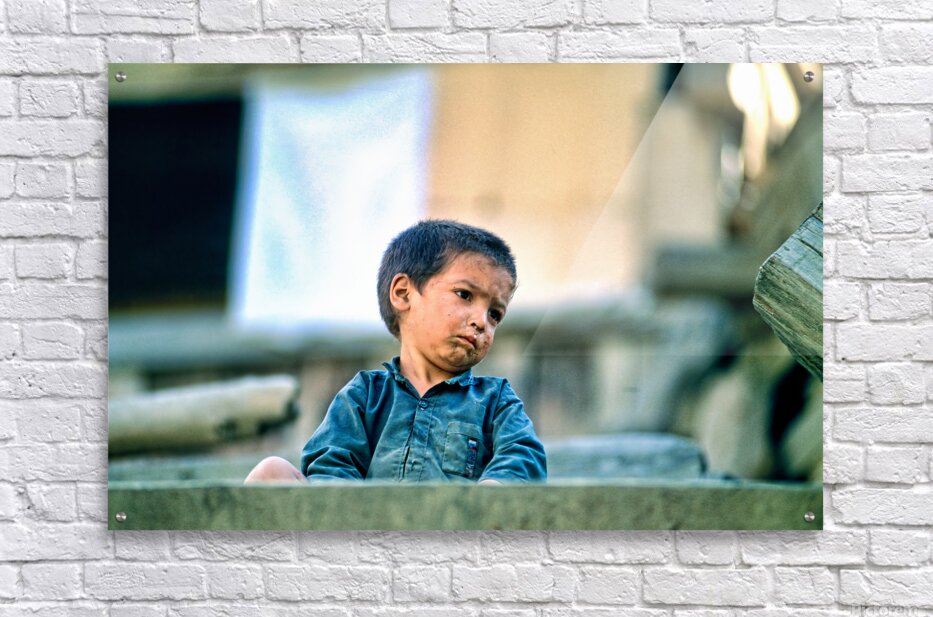 Get this artwork "Sad boy sitting on stairs in Lahore Pakistan during the day" in a framed print.