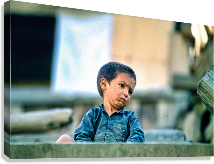 ABOUT THIS ARTWORK: SAD BOY SITTING ON STAIRS IN LAHORE PAKISTAN DURING THE DAY